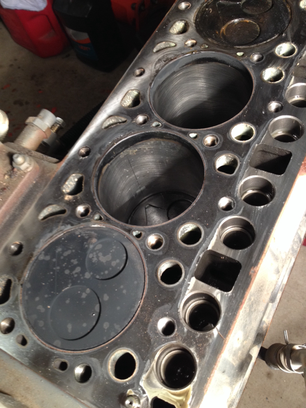 I just measured the distance between the damaged cylinder and the next cylinder. .318. Not as bad as I thought. The distance to the closest coolant passage: .211. So the bore on this engine is 3.40". Looking at some cylinder liners tonight, the OD is 3.59 on a 3/32" liner. So I am looking at .19 of difference. Deduct .003 for a press fit and I figure they will need to bore the cylinder to 3.587. That's a difference of .187. Divide by two, and there will be .0935" of metal to remove from the cylinder all the way around. Correct me if my math is fuzzy. This keeps me from thinking about the 6 grand I was quoted for a remanufactured engine.