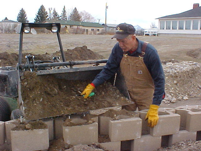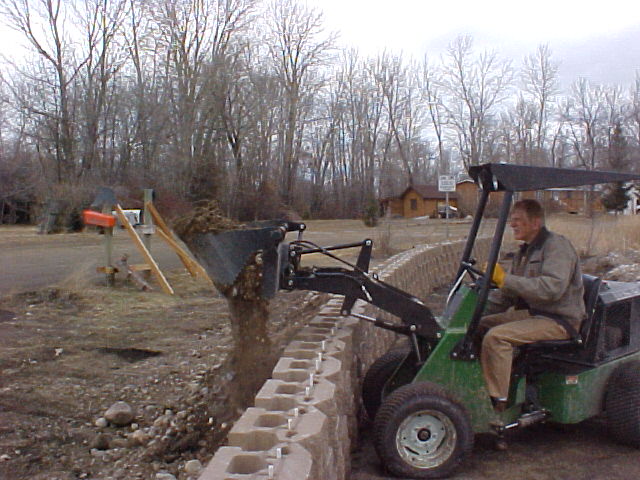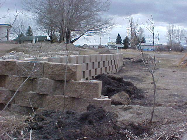 </font><font color="blue" class="small">( Wall block being delivered. Each block weighed 85 lbs and we bought 509 blocks )</font>