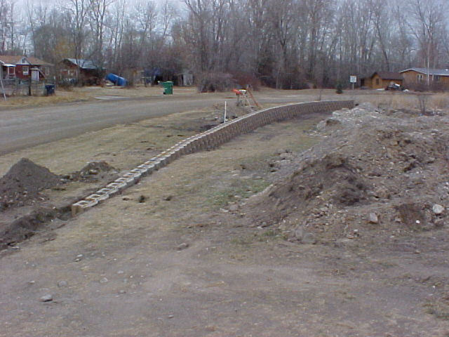 View from the road. This is the back of the wall and will be filled in with hedge on top. Many people stopped to ask why I was putting the blocks in backwards. My reply was that front side was going to be enjoyed by my family. I didn’t tell them of the back fill and hedge on top.