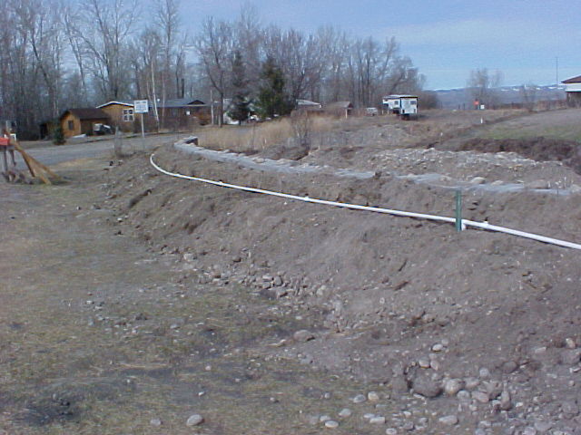 Clean dirt (rock free) applied. Have the first pvc run put down for the sprinkler system.