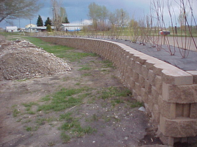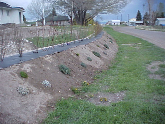 A few more pictures of the wall as the shrub planting is completed. Covered the top in fabric for weed control and started to plant some ground cover to help hold the soil on the front slope.