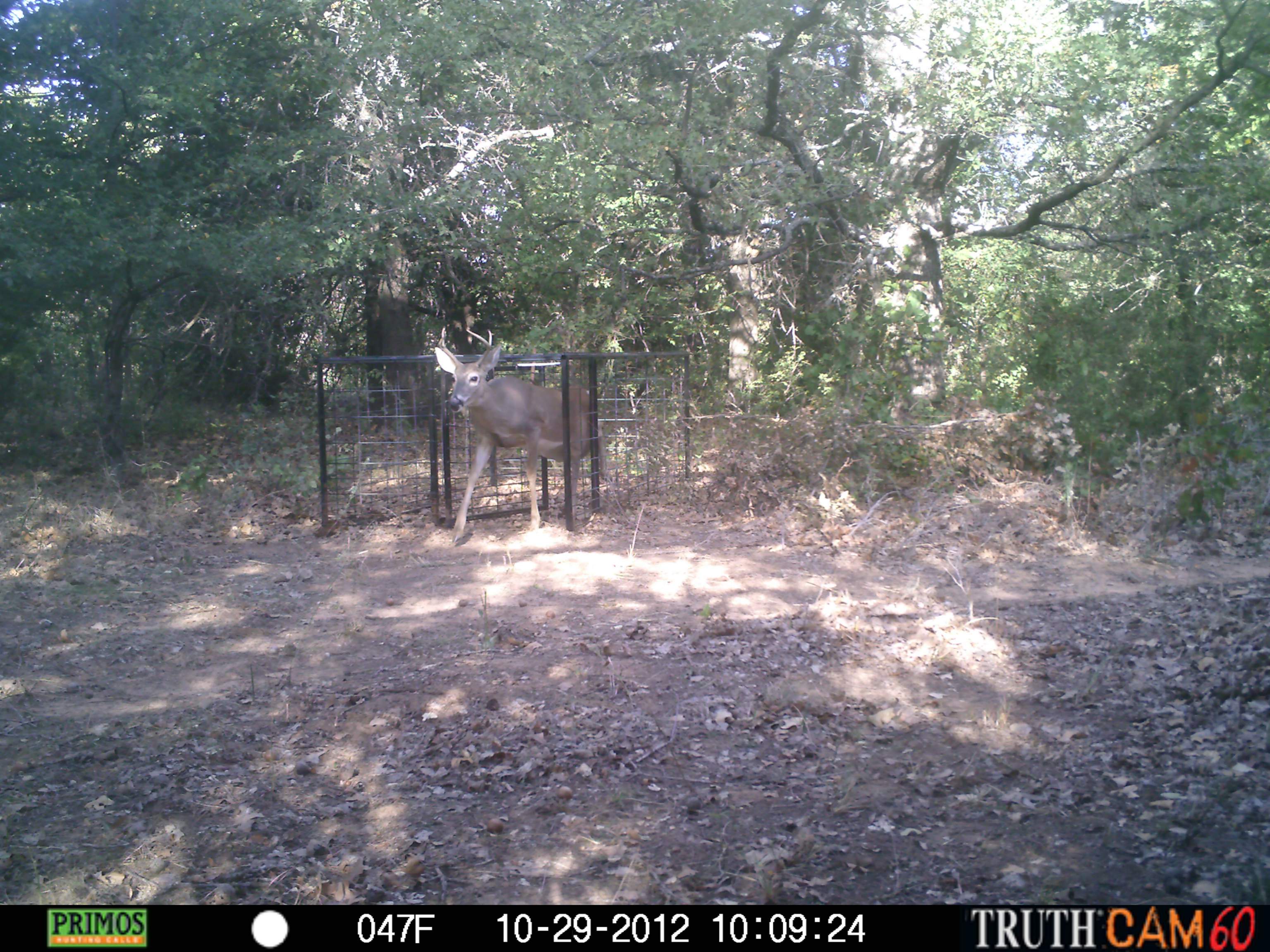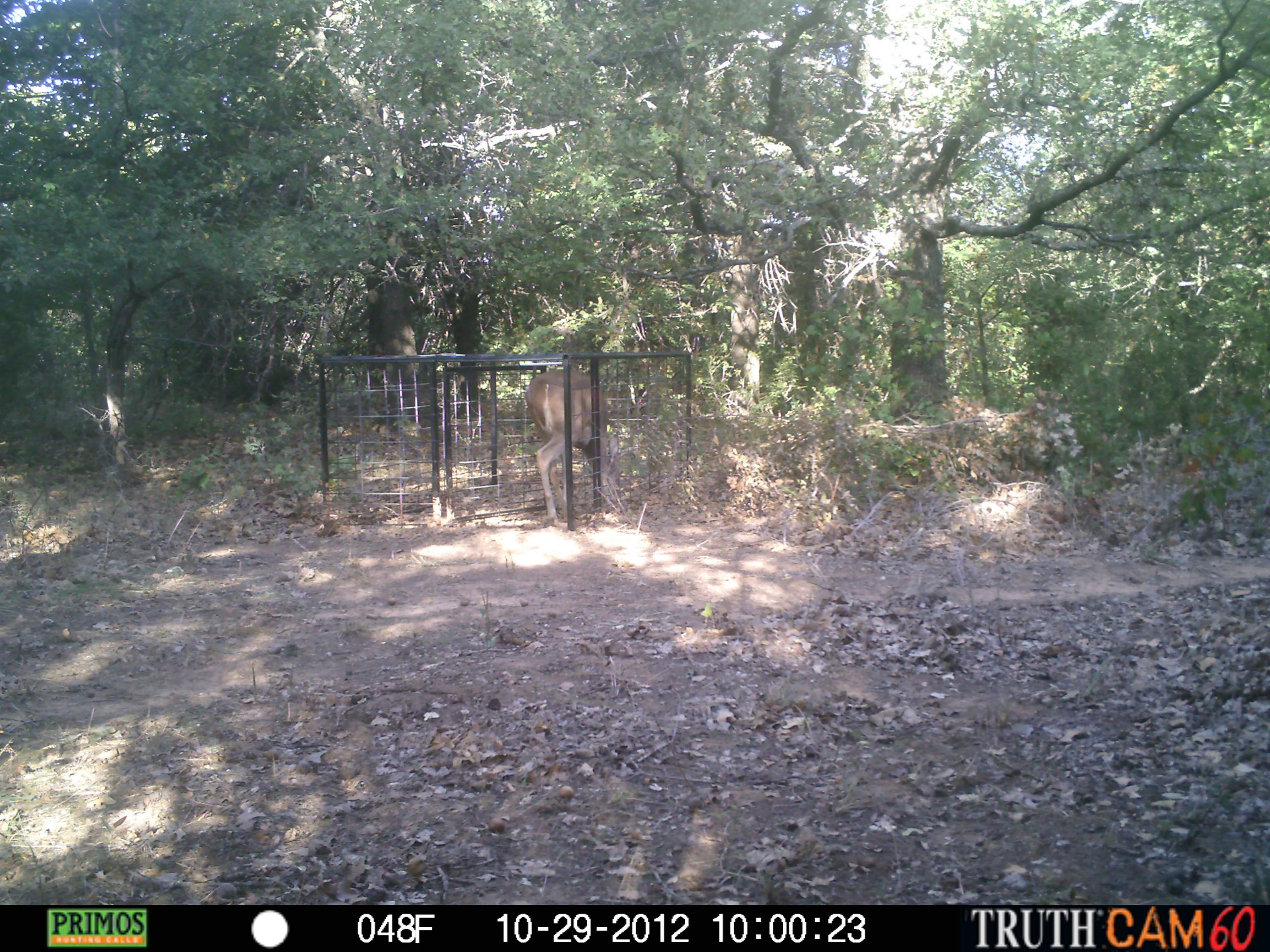 Deer keep going into our hog traps and eating the corn. We've decided to put a wire across the top horizontally about one foot from the top. Hope that helps. Some people told us to soak the corn in Diesel and the deer want eat it. Wrong, we've soaked the corn in diesel for days and then put it out. We have pictures of hogs, deer, squirrels, coons and crows eating it. We've had several trip the gate and spend the night in the trap.