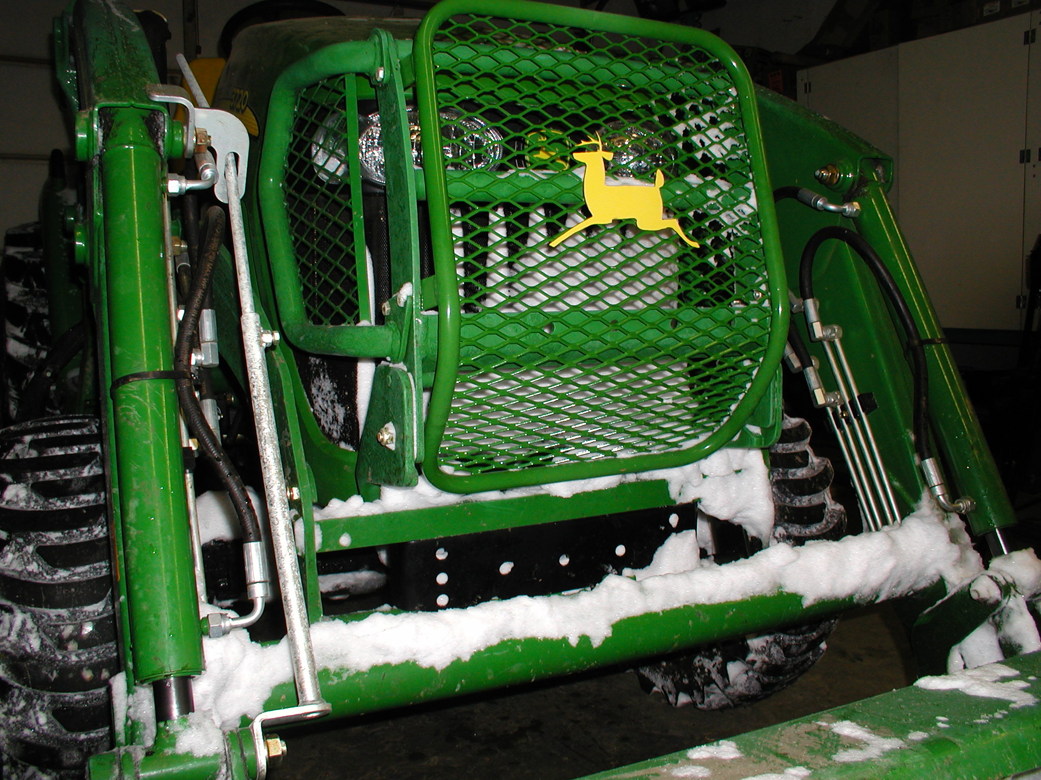 Fortunately, no puncture. The previous owner warned me as he had to straighten out the grill slightly as did I. Back to initial post, sorry, but it would not be hard for a good welding shop to add expanded metal to a typical standard guard or fabricate one from scratch that is heavy-duty. A nice JD shade of powdercoat would top it off.