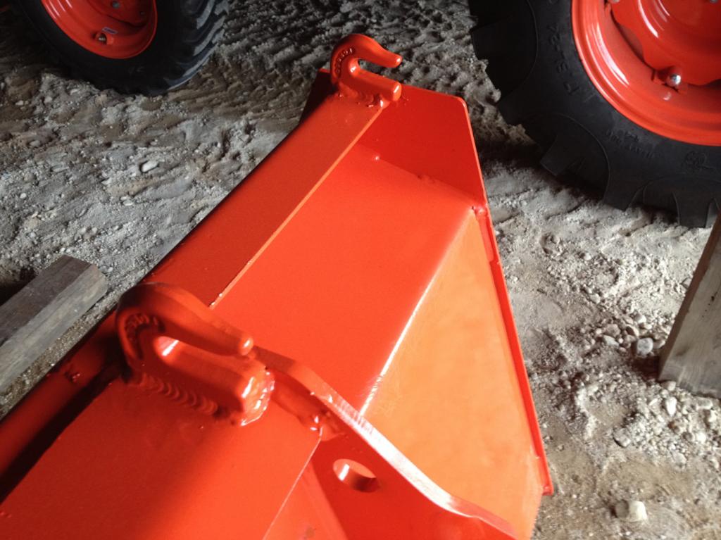 I have what Kubota called the round 72" bucket. Listed weight is 463 lbs. I don't weld so this is how the hooks went on.View attachment 390534