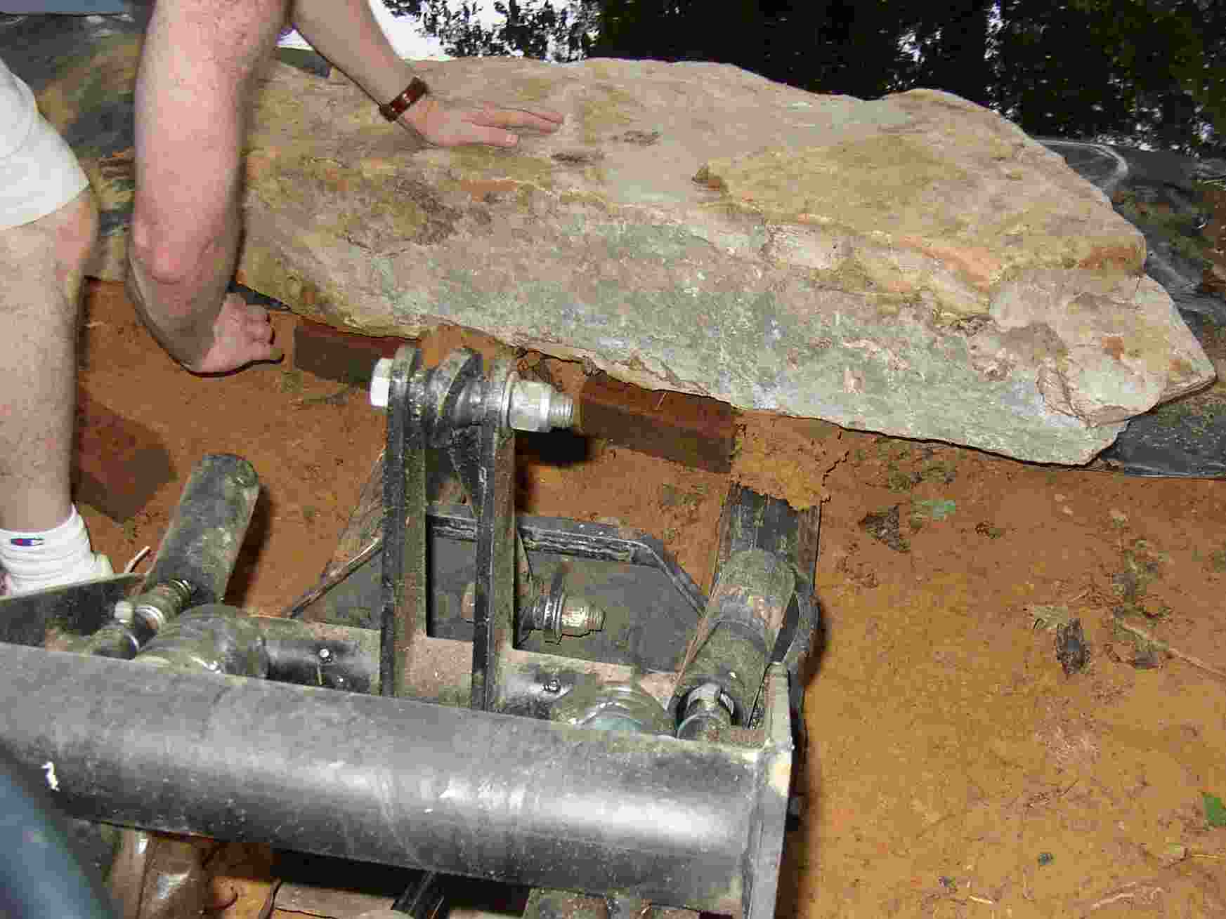 After it was pretty much in position I lifted up one side so that bricks could be slid underneath to level the stone.