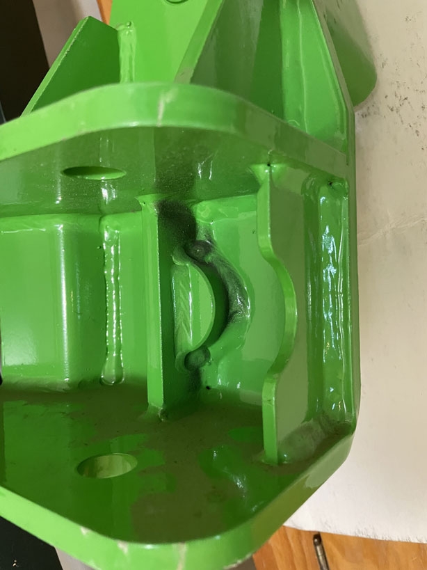This is the new one I got from the dealer. Looks like they have done just what you suggested -- the shaft comes through the hole in the plate about twice as far, then they have added that brace welded across the end of the shaft.
