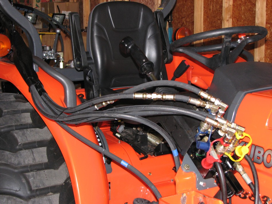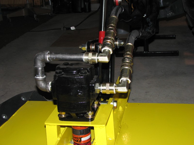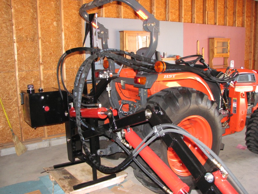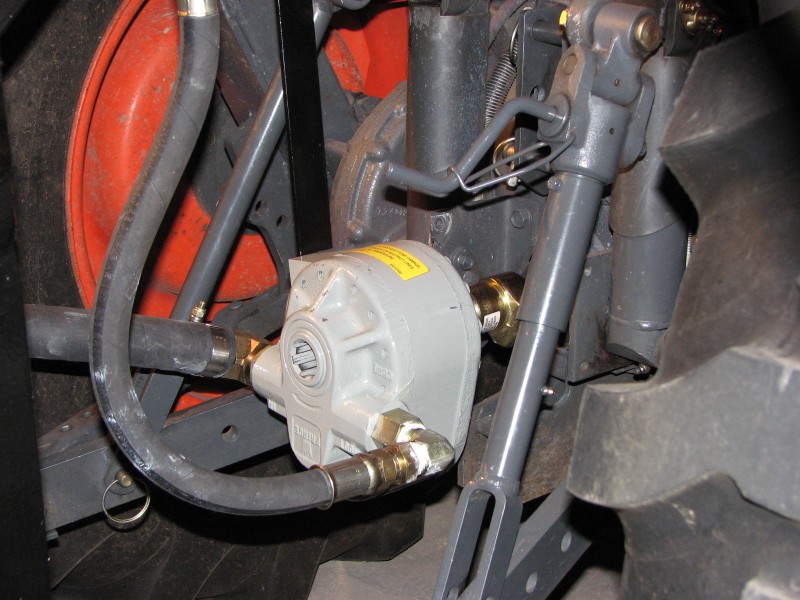 The main swivel is made from 2 short small trailer stub ends with a central carrier - mounted vertically with a hydro cylinder to swivel about 170*