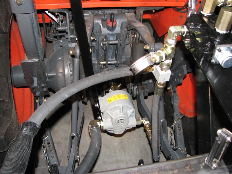 50 litres and filter with hydro splitter to enable two actions at once from seperate control blocks -especially on the digger.
