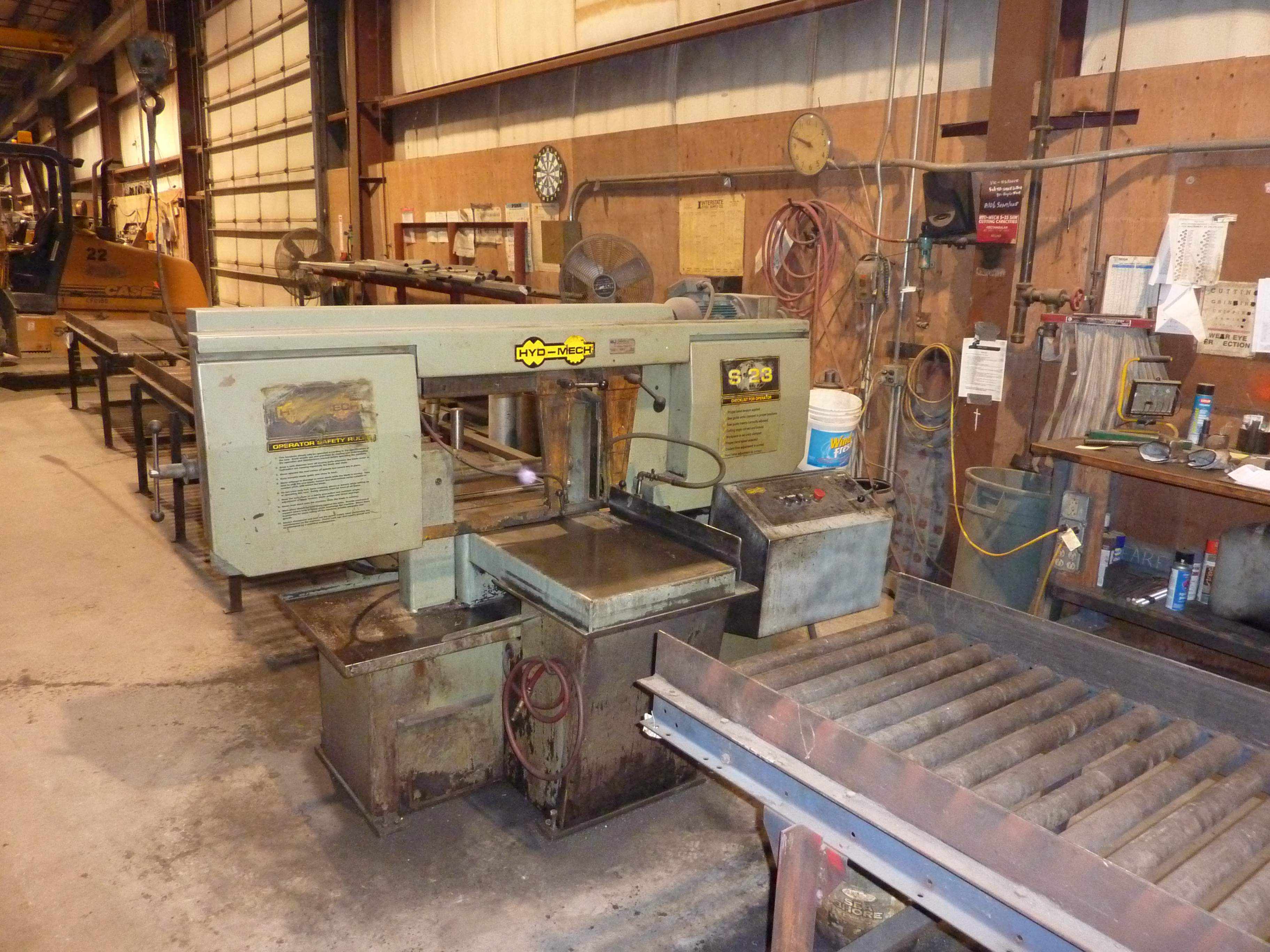 Here are the master plan, a couple shots of the work area and a saw that would scare the daylights out of my Harbor Freight 6x4. It cuts 6" schedule 40 pipe like nothing. One lever works the hydraulic ram that holds the material to be cut. Another lever controls up and down of the saw. Awesome piece of machinery.