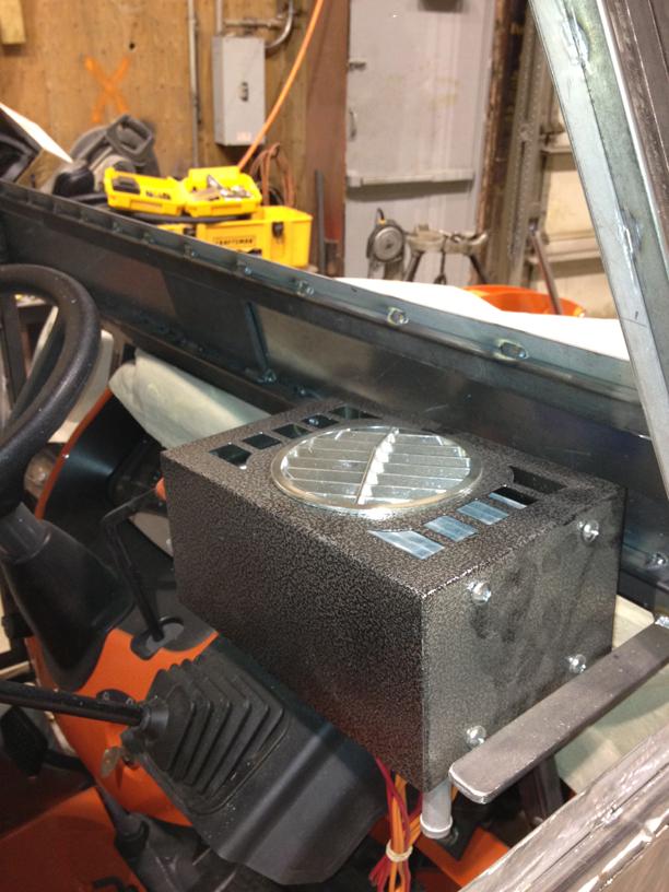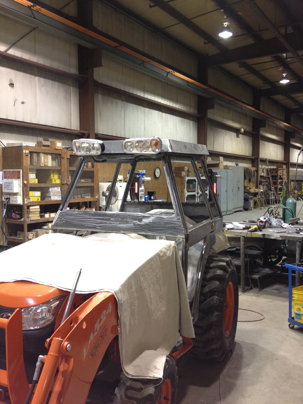 Unfortunately, the project is behind schedule. After spending all day this past Saturday and getting some assistance from the "elves" things are turning around. All the strips have been welded in for the support of the glass. I dropped the patterns (cut from 1/4" luan underlayment) with the glass guy on the way home from work today. Here's where it stands as of today. The component pieces are reassembled into something resembling a cab. They had been disassembled for welding the window support strips, metal skin, etc. There are a couple small things remaining and then it will be disassembled again for painting. Should have paint done later in the week. I'm doing the frame and skin gray and the top orange. Picked up a couple cans of gray trunk paint for the inside.
