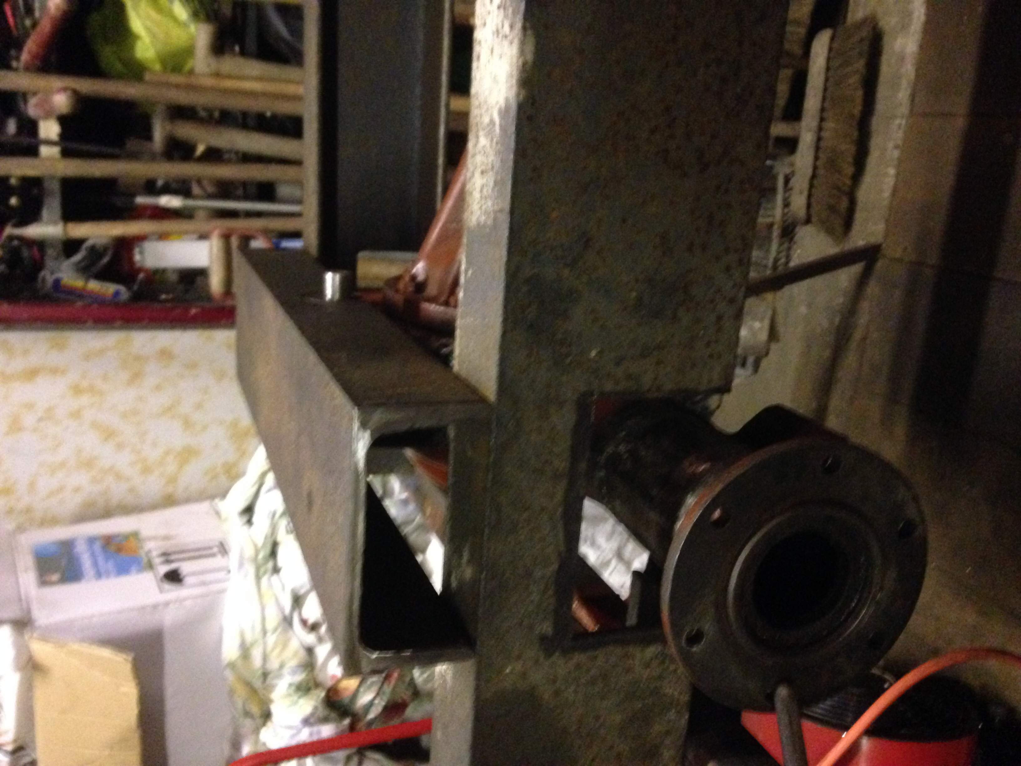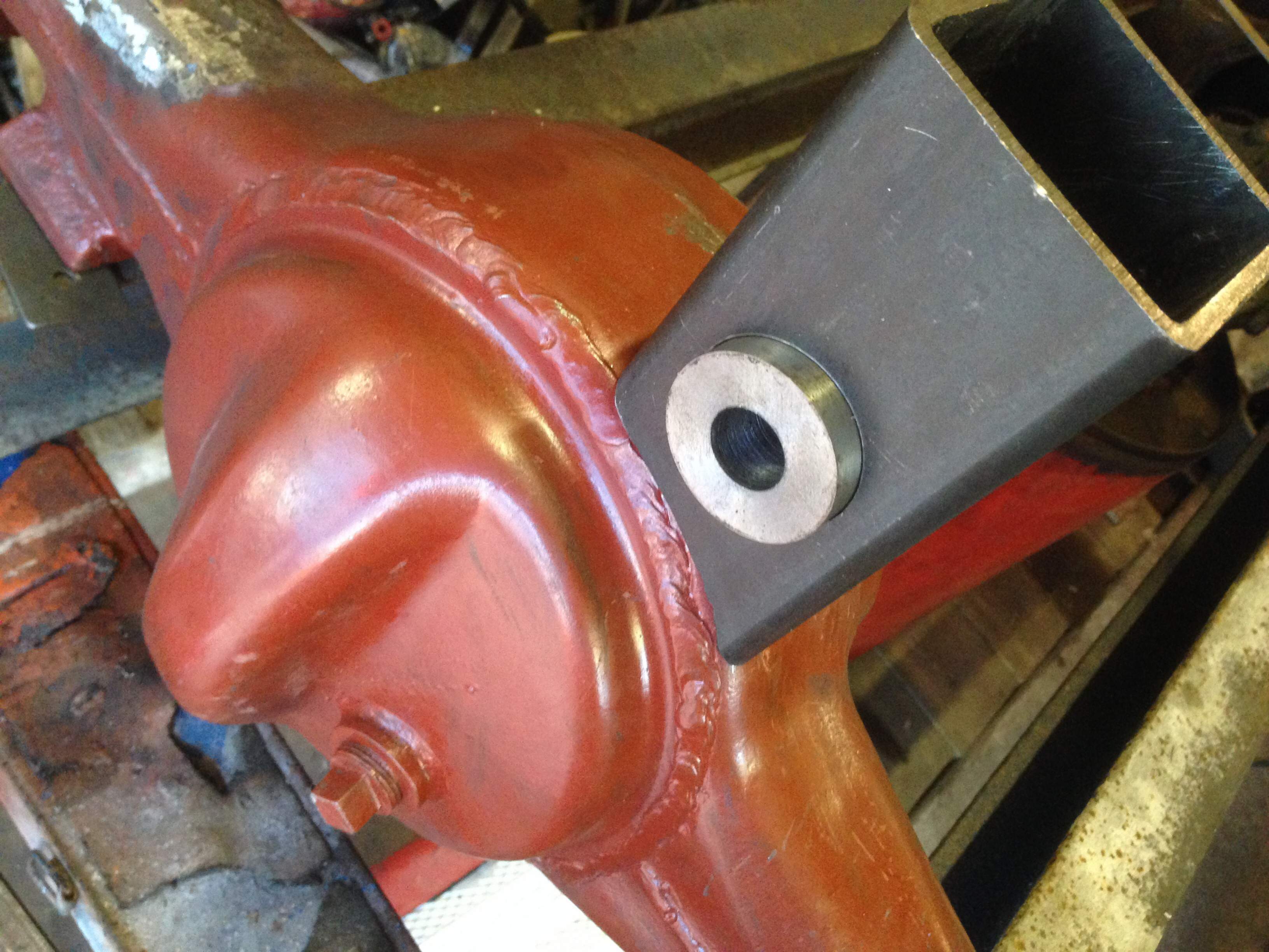 I've part drilled through the cross member with a hole saw both sides so I can finish it off properly when I've made the bushes and pin. Just wanted to get it set up temporarily to see what it looks like.