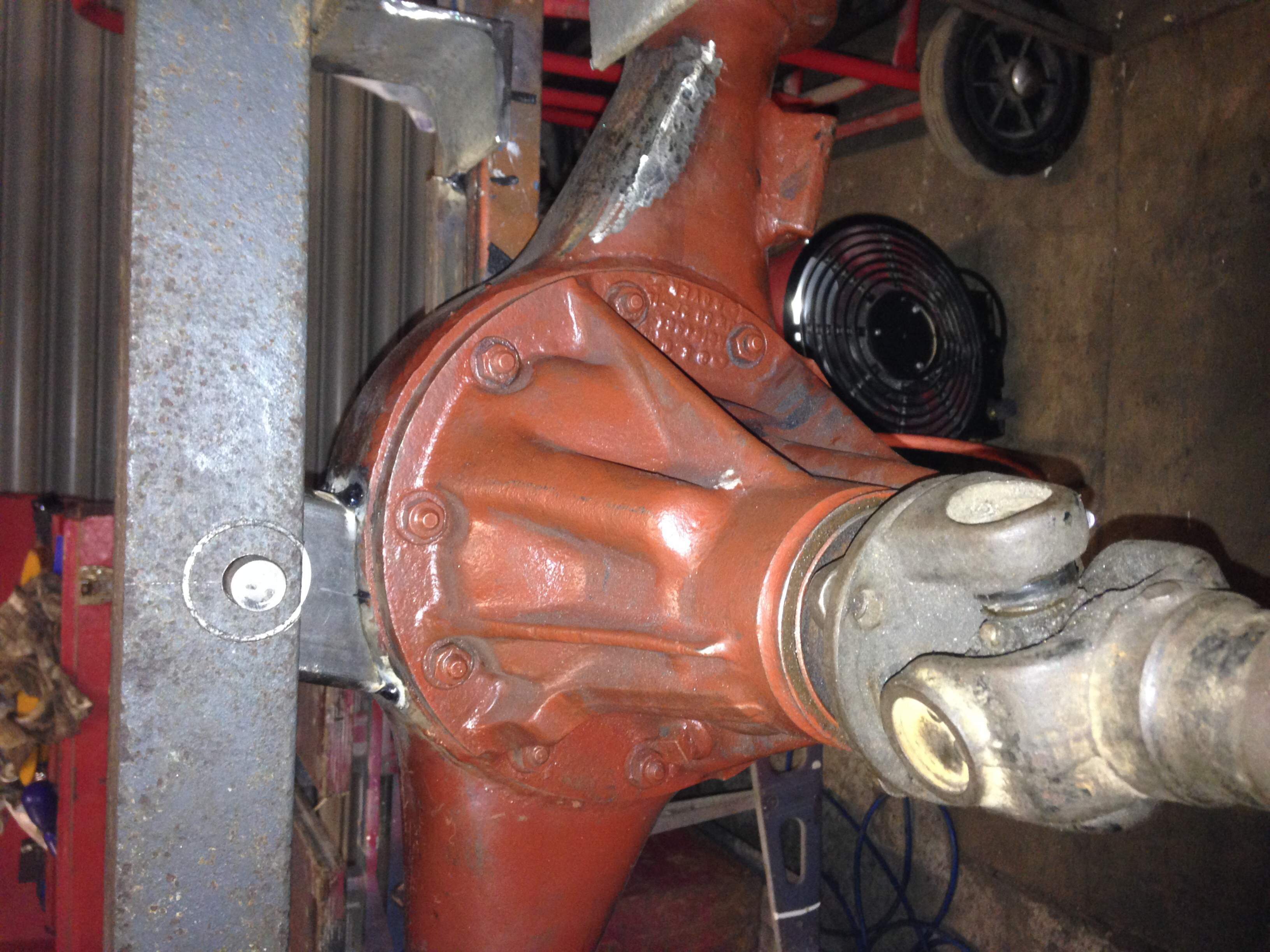 The front axle is just hanging from a temporary pin while I chopped out the chassis rails to give travel clearance and yes that's a cable tie holding the transfer box.....