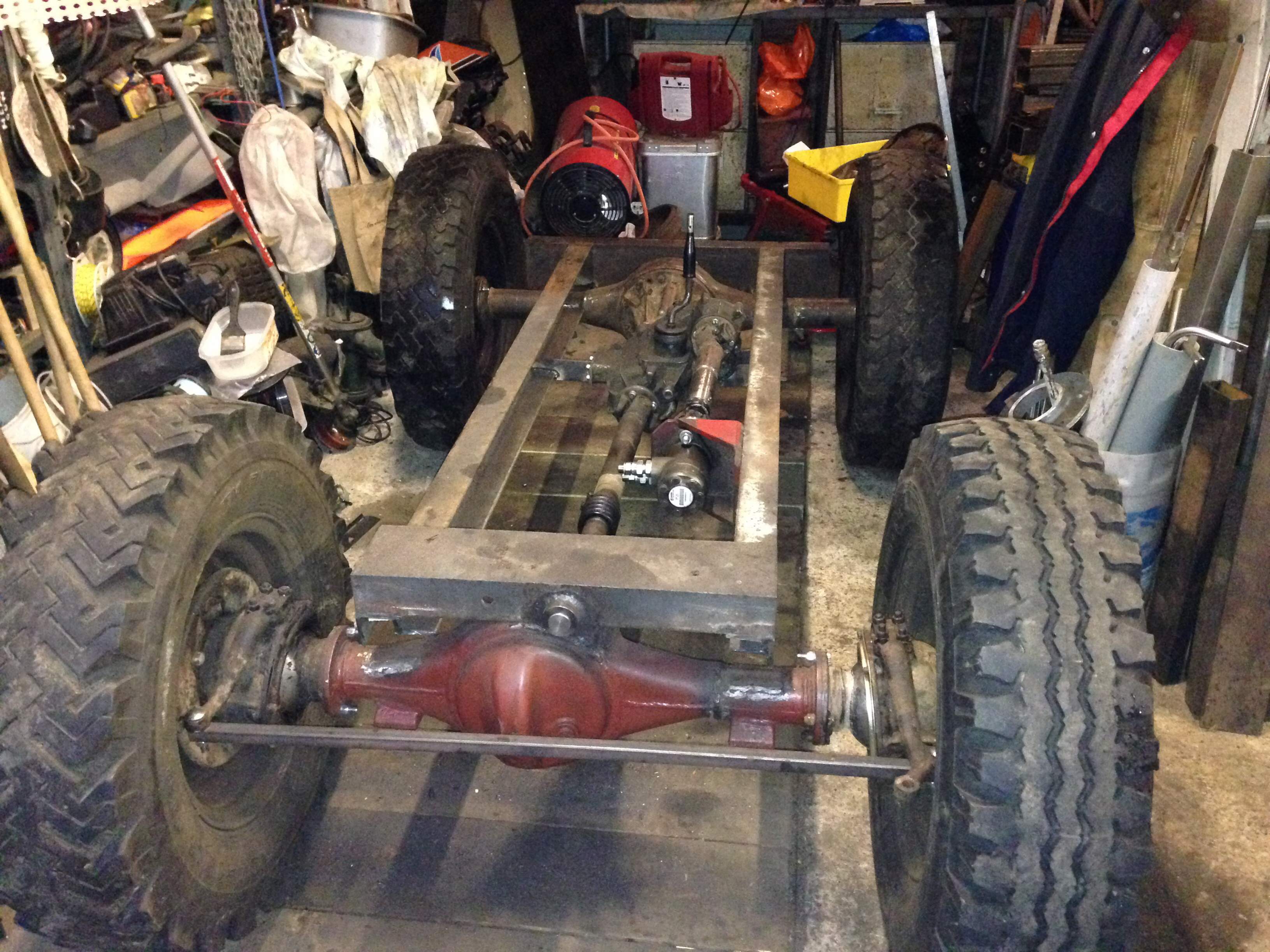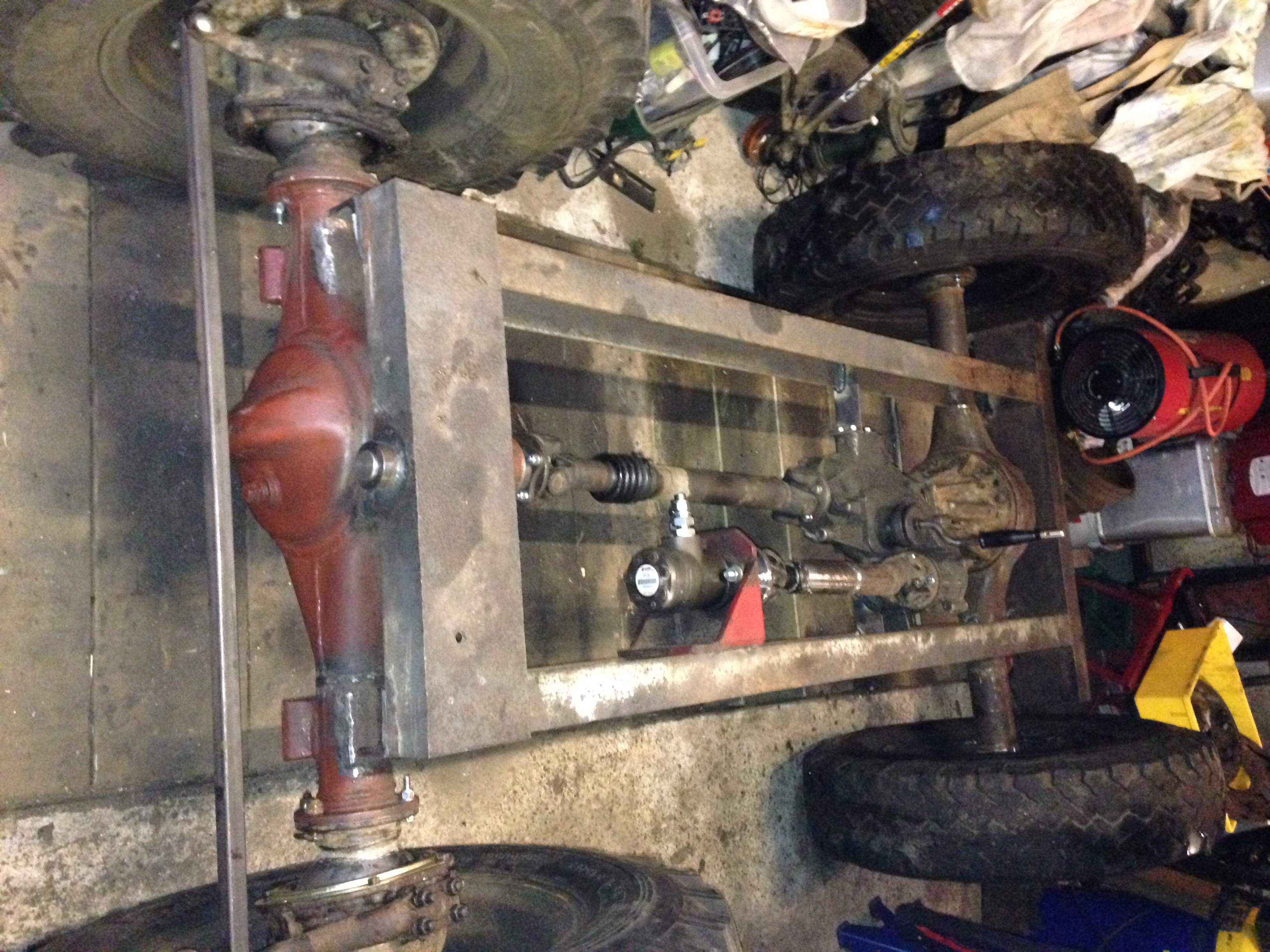 The transfer box is now bolted in place and connected to both axles. The hydraulic motor will be mated up to the drive flange, just need to turn an adapter flange.