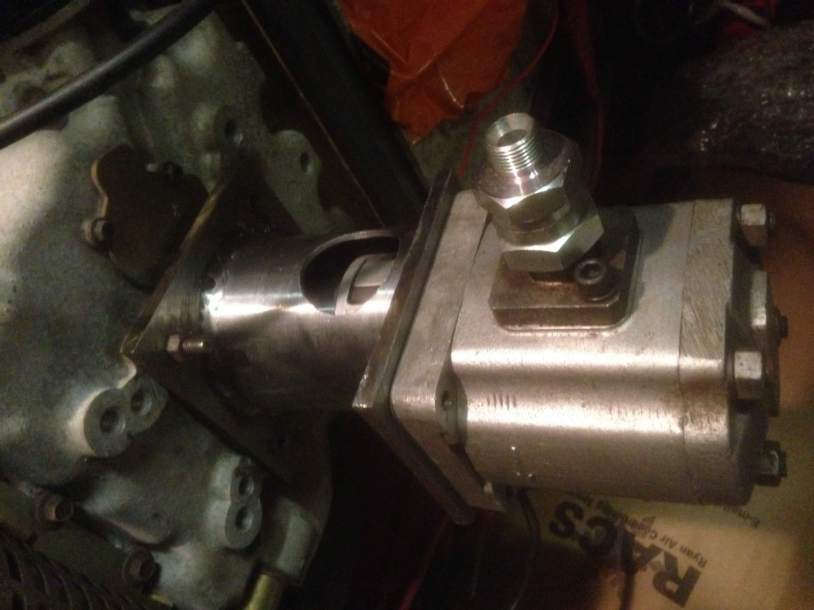 The housing for coupling the hydraulic pump to the motor was welded up from scrap plate and tube then true'd up in the lathe.