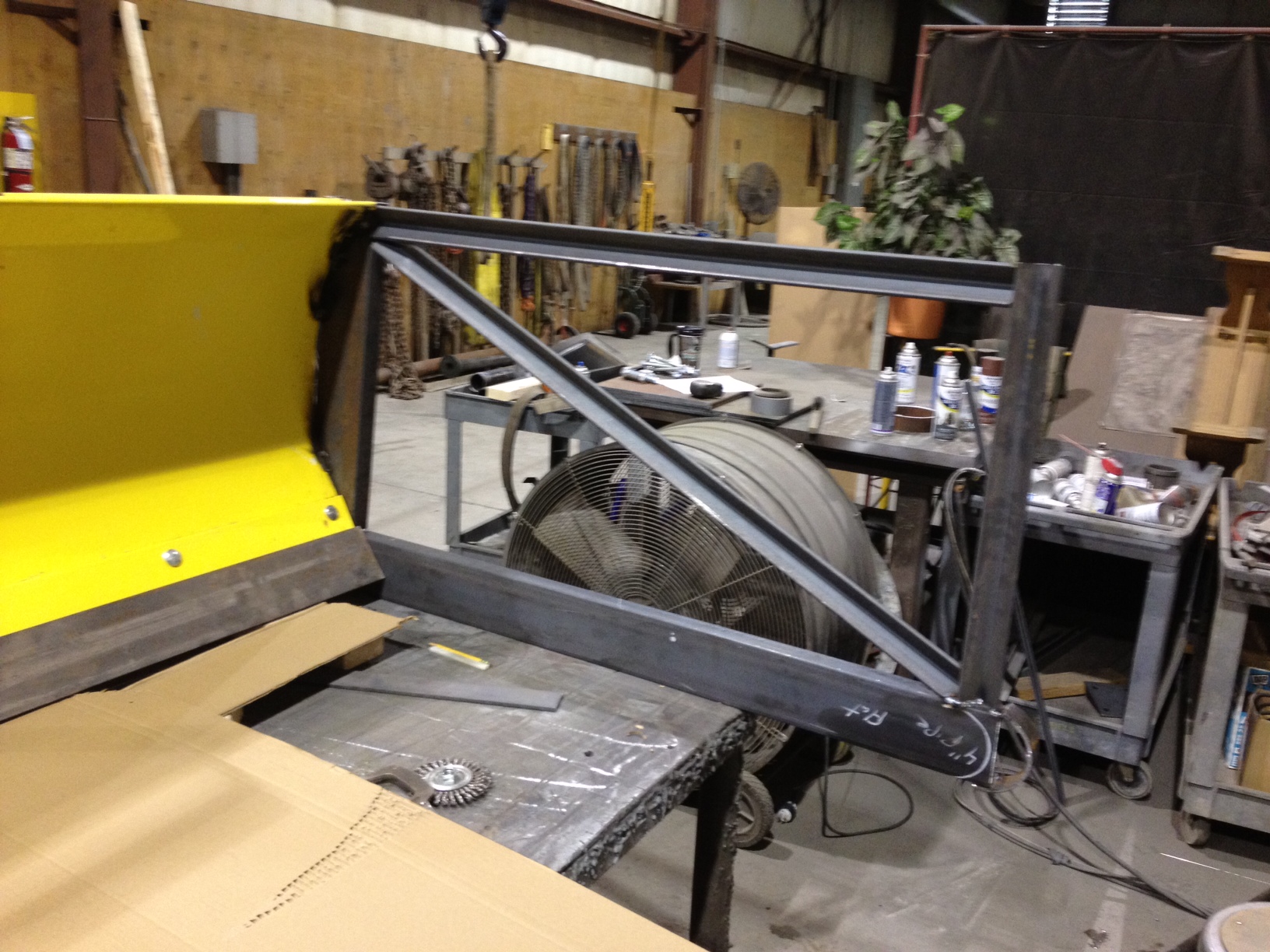 To clear snow from several large areas at work it seemed we could use a snow box / pusher of some sort. The work load in the weld shop is a little thin now, so I wandered around looking for some parts and pieces that could be used to make one. First of all, there was a spare 7-1/2' snowplow (minus some hydraulics and part of the frame). It was cleaned and painted a few years ago and instead of finding the missing parts we bought a new Blizzard plow for a Tahoe.