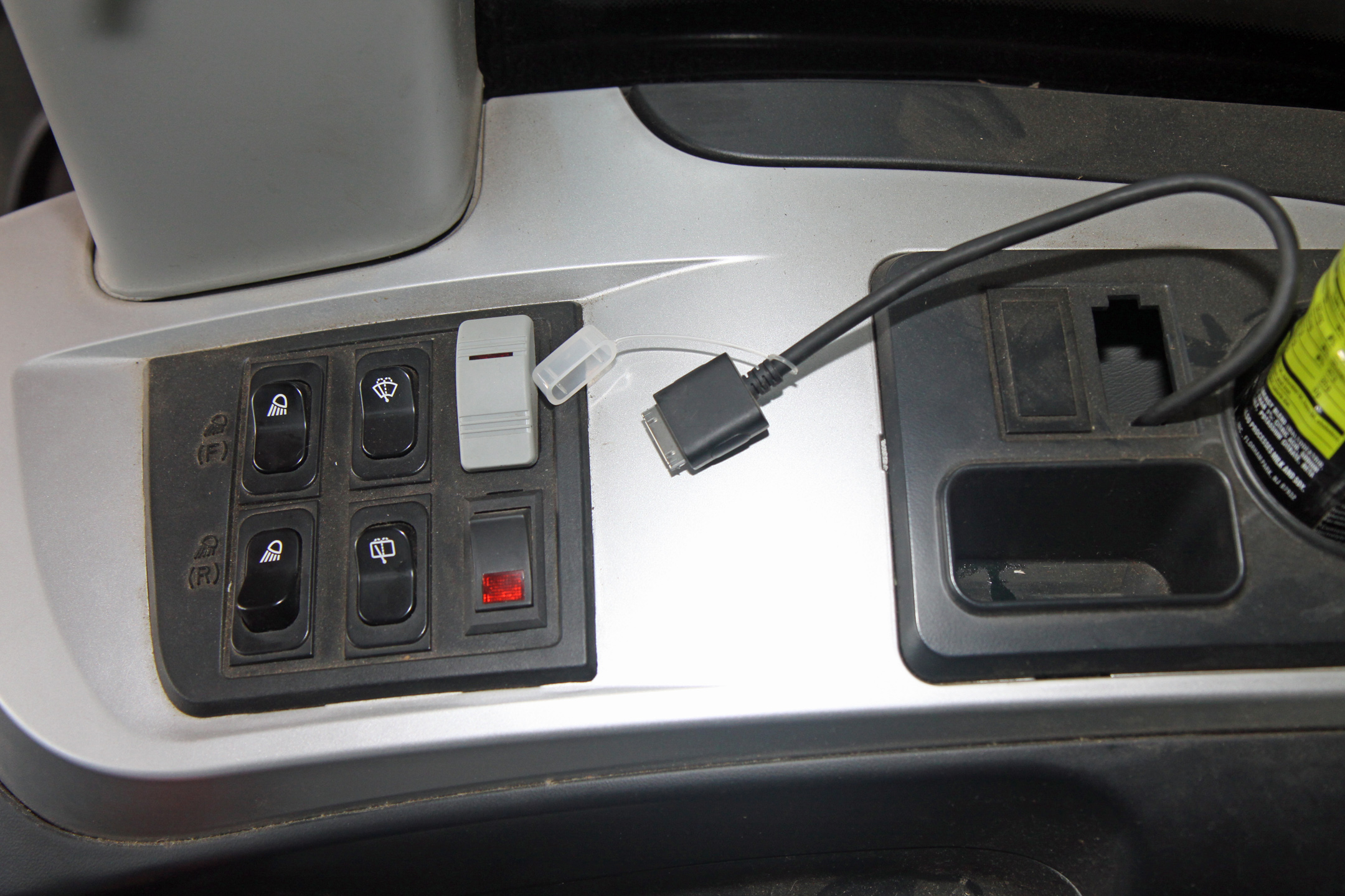 Mine's got a plug under the cup holder, but it's not for an ipod.