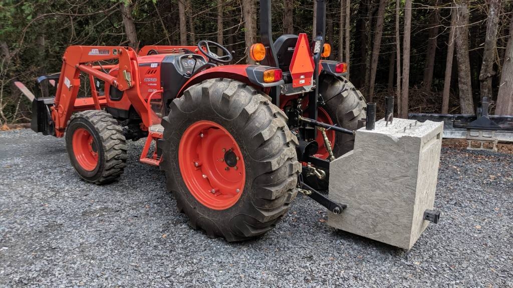 Have a dk55 with the cab. In the manual it states the full capacity is about 2800lbs for lifting. The problem is, when we attempted to lift about 2,000 lbs, the rear wheels about came up off the ground. They have fluid in them but now we are thinking we need to add a counterweight to the 3 pt hitch when lifting stuff that weighs that much again. How much of the max capacity do people usually use for counter? The manual doesn't say other than a warning to use ballast.