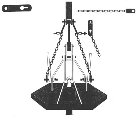 The chains hook to the top pin ends on the tractor rear and on the lift arms.