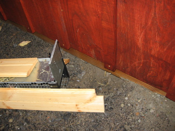 Wife nailed a block over first entry hole made in the outhouse/coop and the next night that persistent sucker chewed another right along side of the first. Hopefully the next picture that I post will be of the stone cold killer behind bars ... errr ... wire.