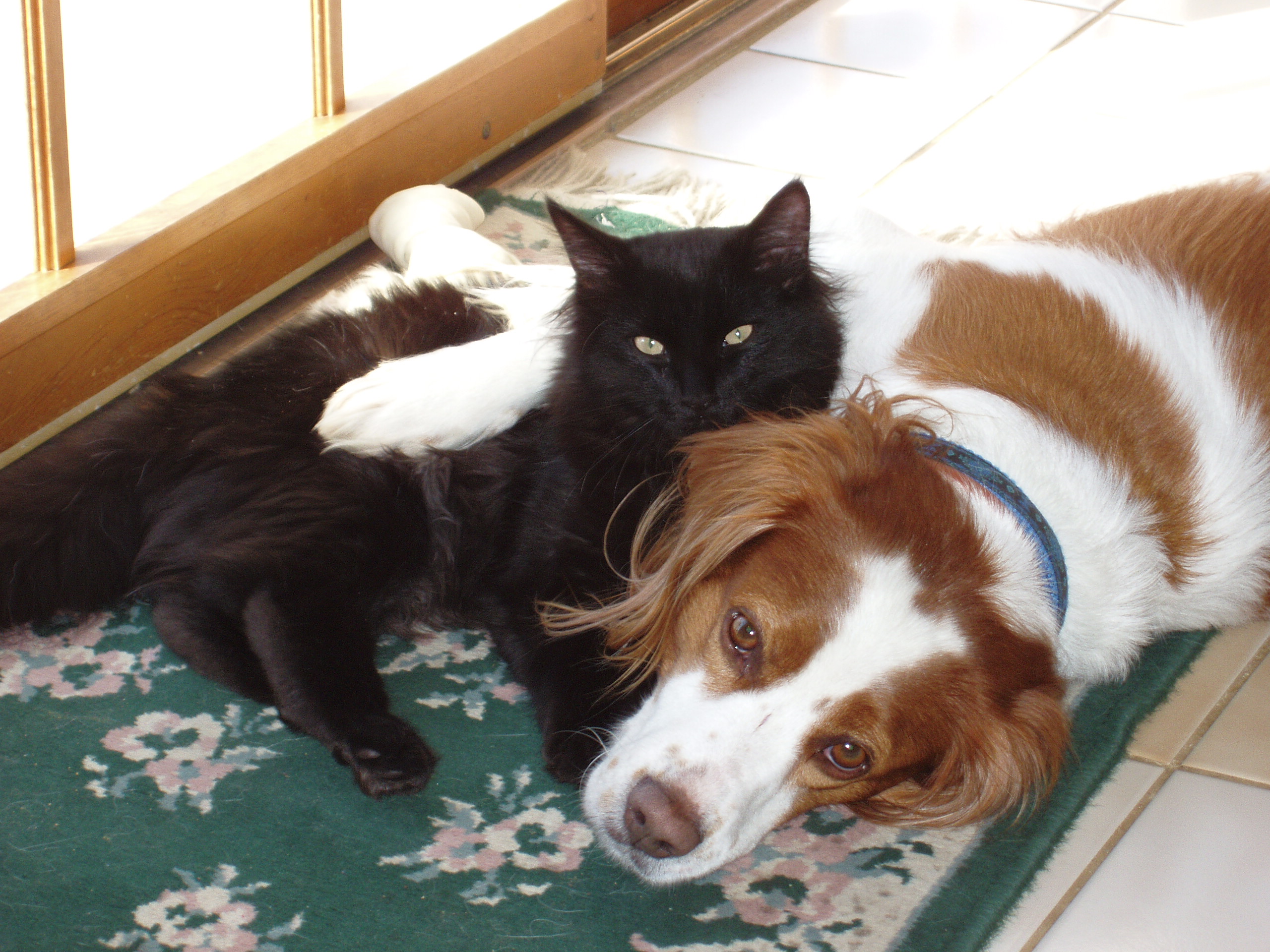 We too are Brittany fans (Coobie-great pics!)and they have been great with all the animals here with the exception of one puppy mishap with a chicken:eek: however, that was more on us than the puppy. Once trained, all was good. They are an extremely smart breed and excellent family dog that can double as a top hunting partner if desired. Sadly, we had to put our last one down after 15 years......they also have decent longevity.