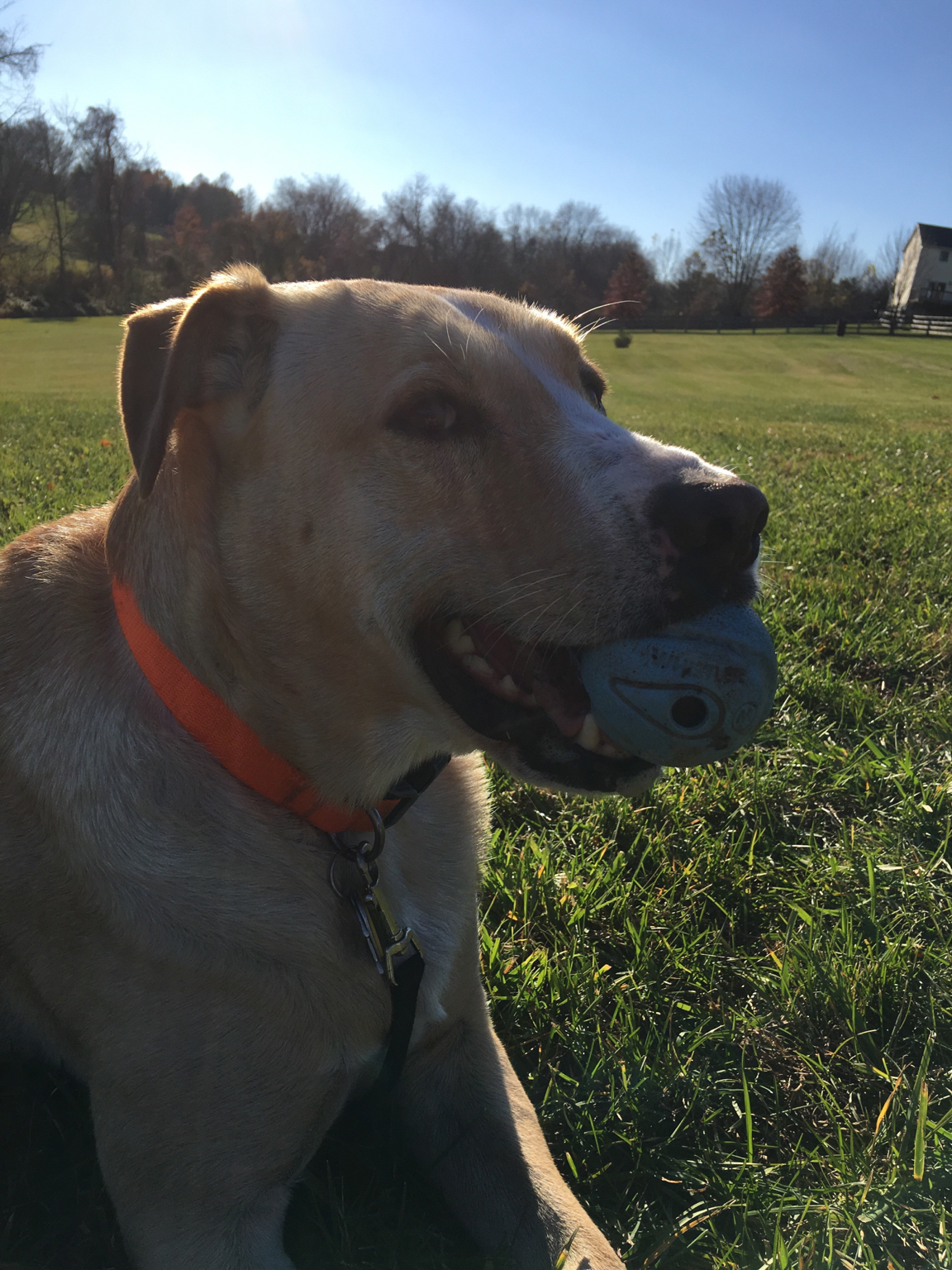 My rescue Kali. My vet thinks she is 6 years old. Vet thinks Lab with some Golden. A dog trainer I know sees some Austrailian Cattle dog.
