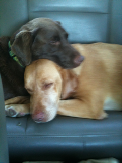 Had to post my pup. The choc is mine. That's miss Jolene. And her yellow buddy bobo, my best friends dog. Who I steal every chance I can. Both great pheasant and duck/goose dogs!!