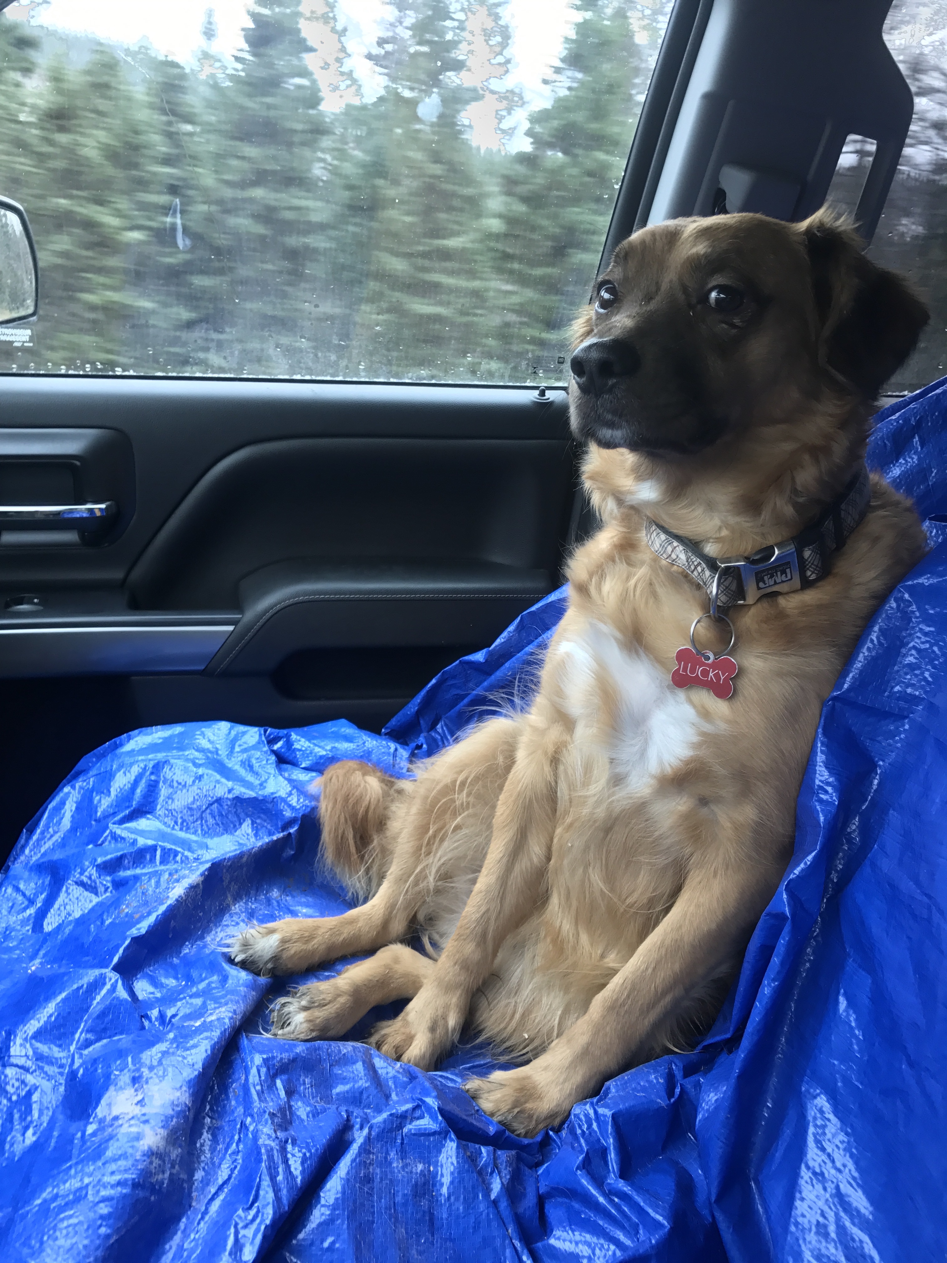 Shy of four months (she jumped on the seat while I was grabbing something from the shop- she readily rides along, though mostly on the floor)- can see the Pit in her: