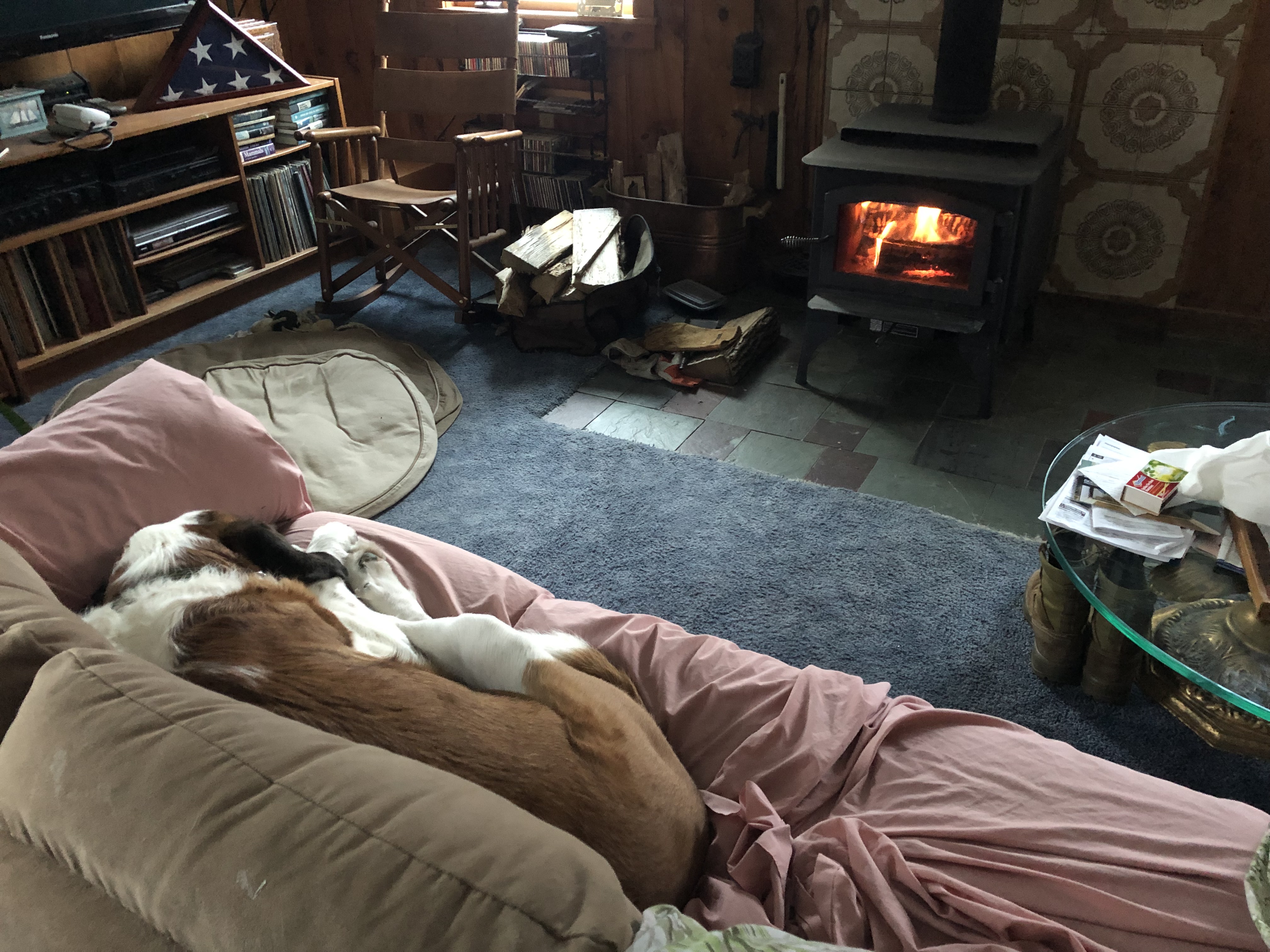 I have not posted here in a while. Brogen sleeping off his first walk of the morning. 13F outside; 74F inside.