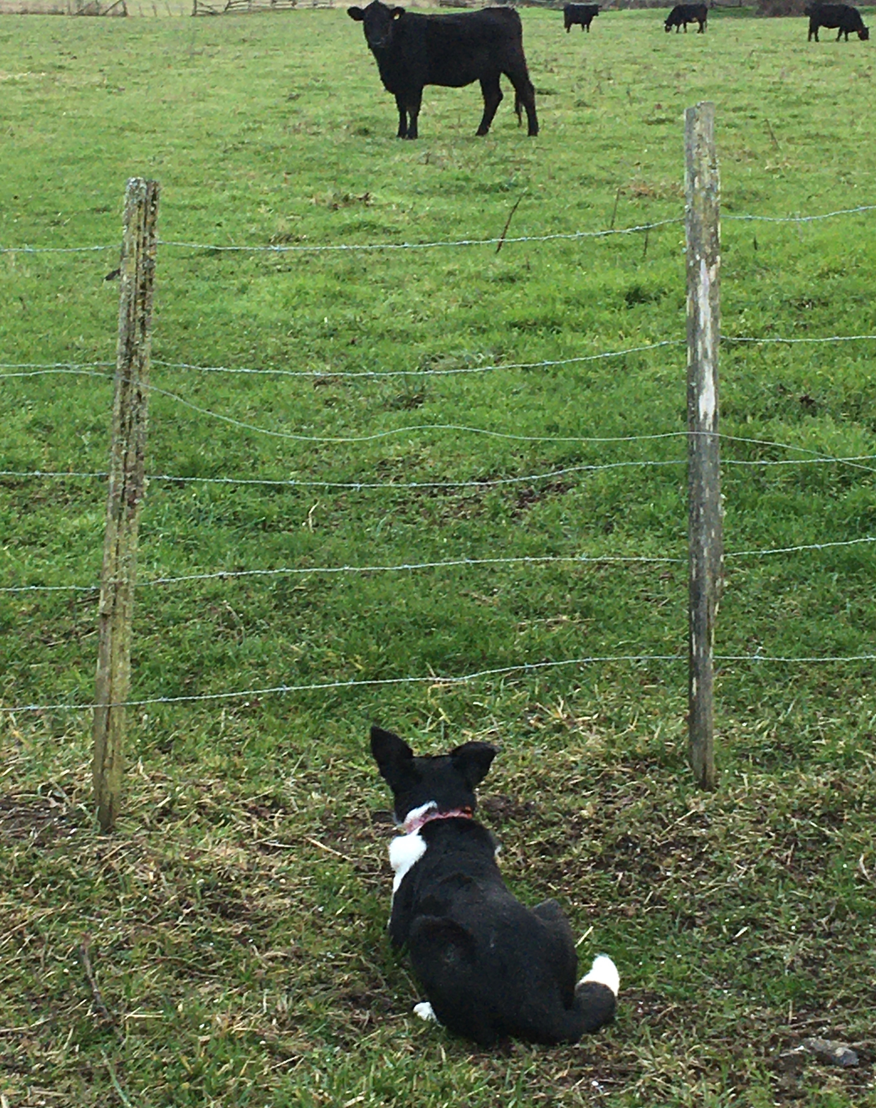 Well, the dog knows she cannot go in with livestock unless I allow her to. So I guess she is communicating to the heifer to stay put :laughing: