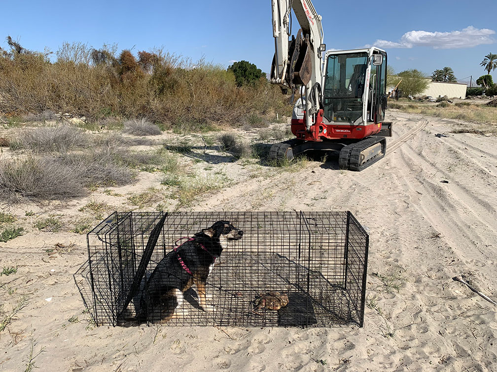 We had some coyotes on the property so I set out a coyote trap……and look what I caught, ZELDA our dog walking in to check out the “bait”