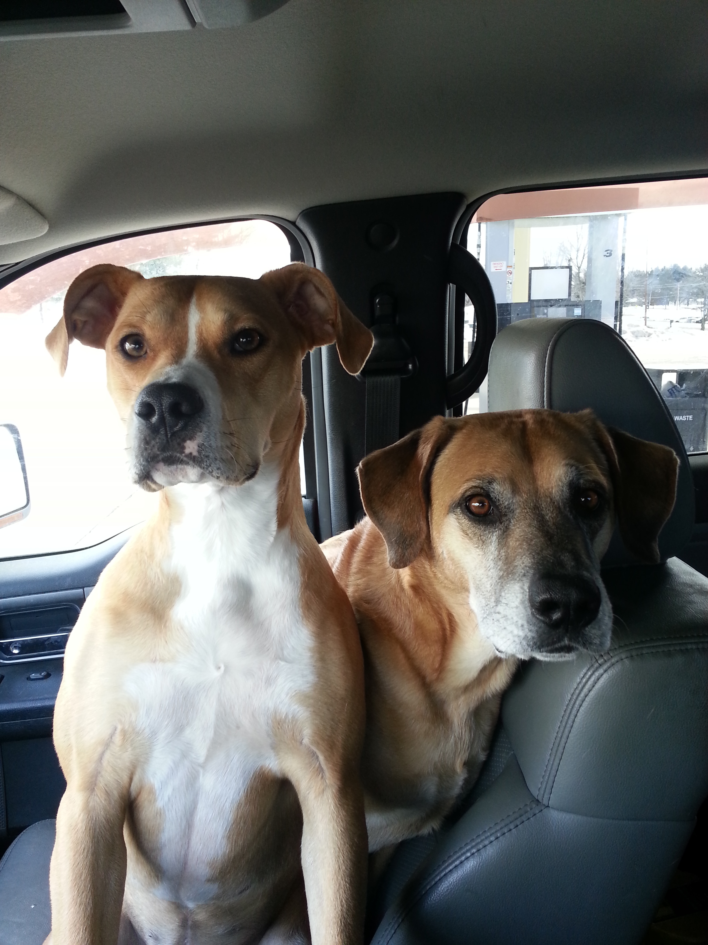 The fine ladies at the bank give me treats for my dogs. My dogs think this is the only reason we go to the bank! When I get back to the truck this is what awaits me.