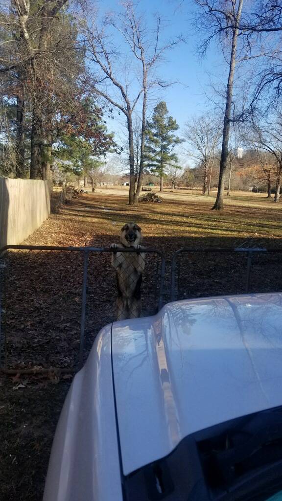Neighbors 2 year old + - dog named "Griz" does wander a bit, does not yet know his name, does not listen, is not afraid of much anything, and leaves piles of poo that smells like pepper with little bells in it...