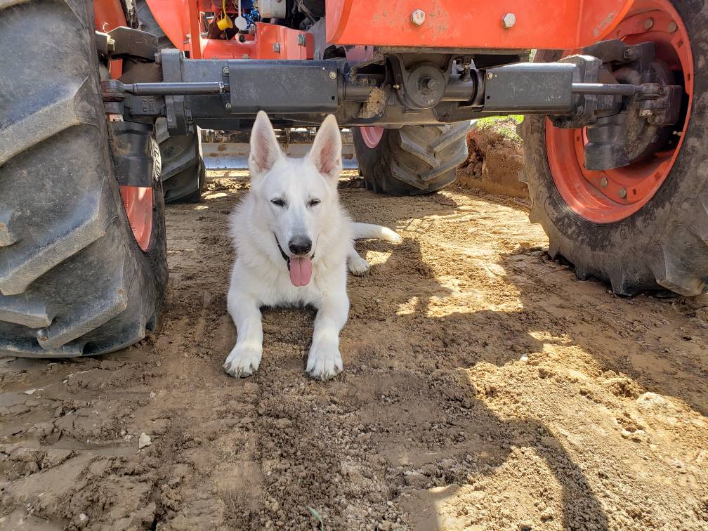 I'm right there with you all of our dogs have been floor dogs or dirt dogs. Our bed is not for animals. I had shut the tractor off for like 2 minutes to get something to drink and he found the shade