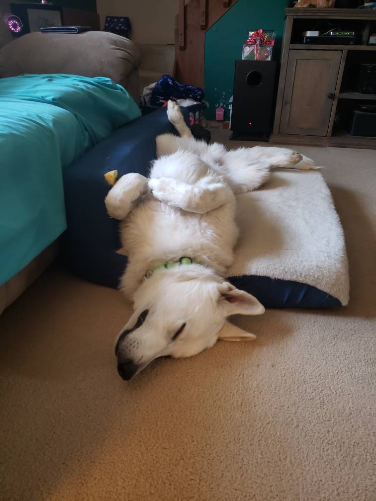 Ruger doesn't get on the furniture. I made that mistake with my last dog, and never could understand how a 75 lb lab could take up an entire bed. When checking into a motel she would often get the queen sized, and I would get the twin. She wasn't spoiled.... :D