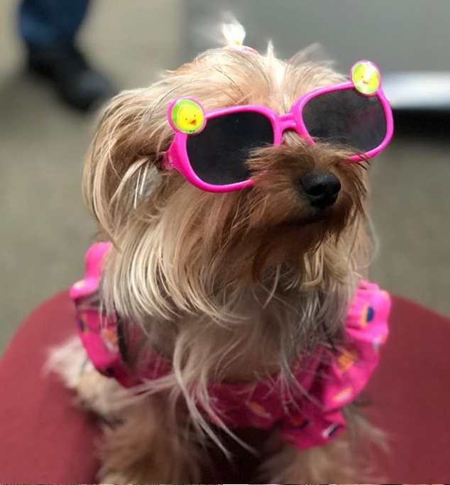 She is a 2 year old Yorkie, and spoiled as they come, but still likes getting in the tractor seat.