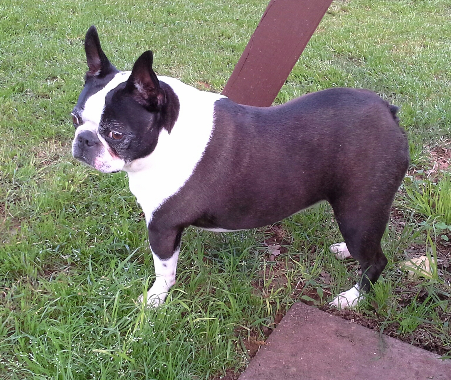 Thanks Wolfman. We've had Bostons since our first one in 1954. Here' some pics of my little girl. She loved helping me with the water hose! Notice the John Deere Blankey!