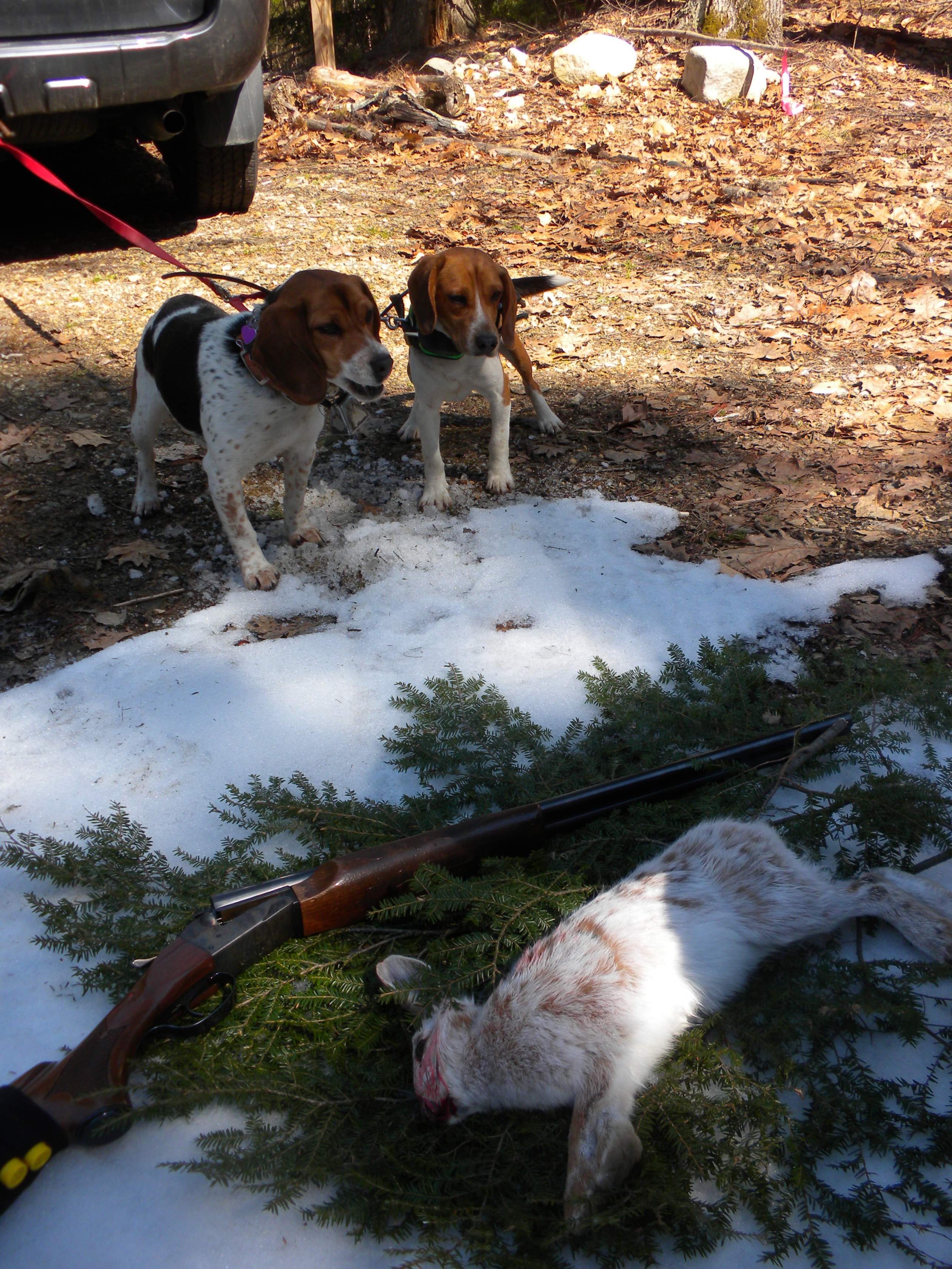 Here's my furbuddies after the hunt with the last Snowshoe Hare for the season....