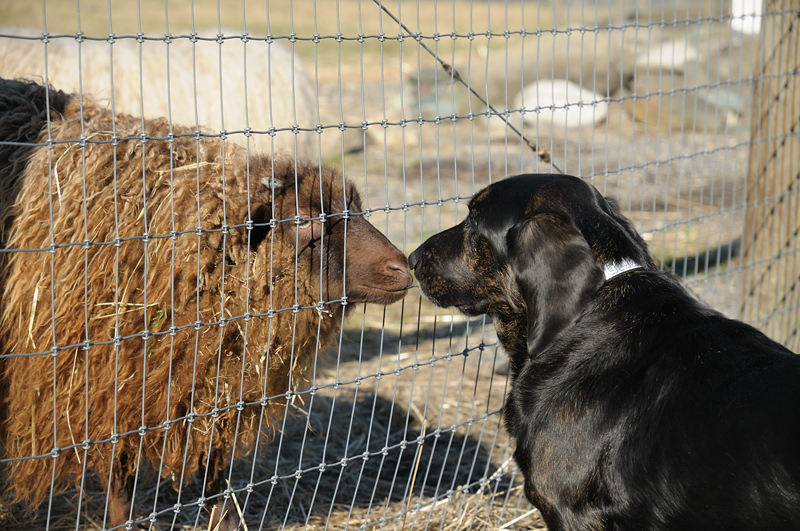 Wally gets along with the sheep and the cat and doesn't chase the chickens so he's easy to have around. Although he does have a sock fetish. He keeps stealing our socks and hides them. Gotta love those dogs.