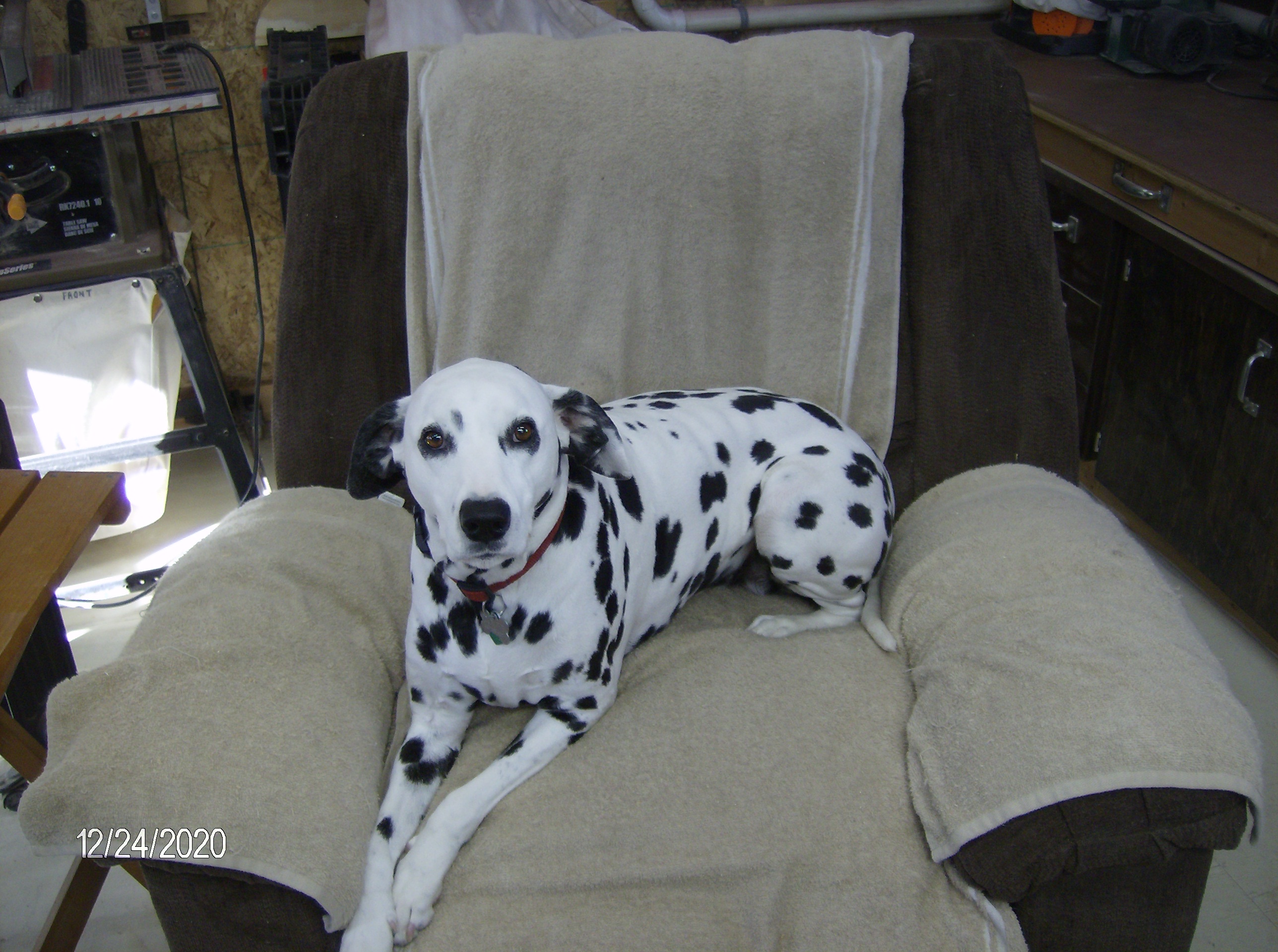 Dottie in "her" recliner in the shop: HPIM3105.JPG