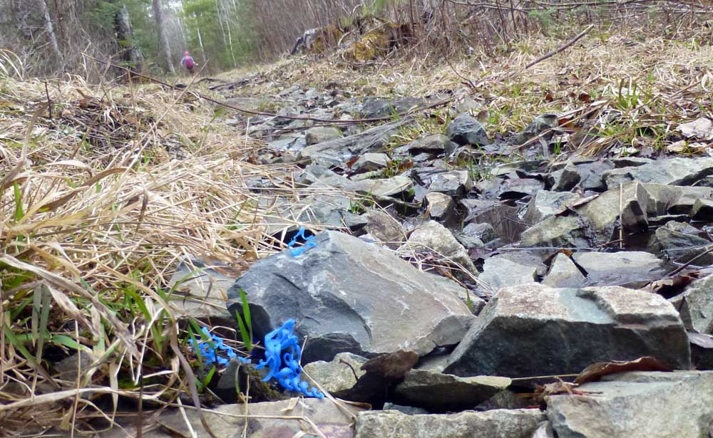 Our camp and at the end of two days of adventures in the woods, we found him here.