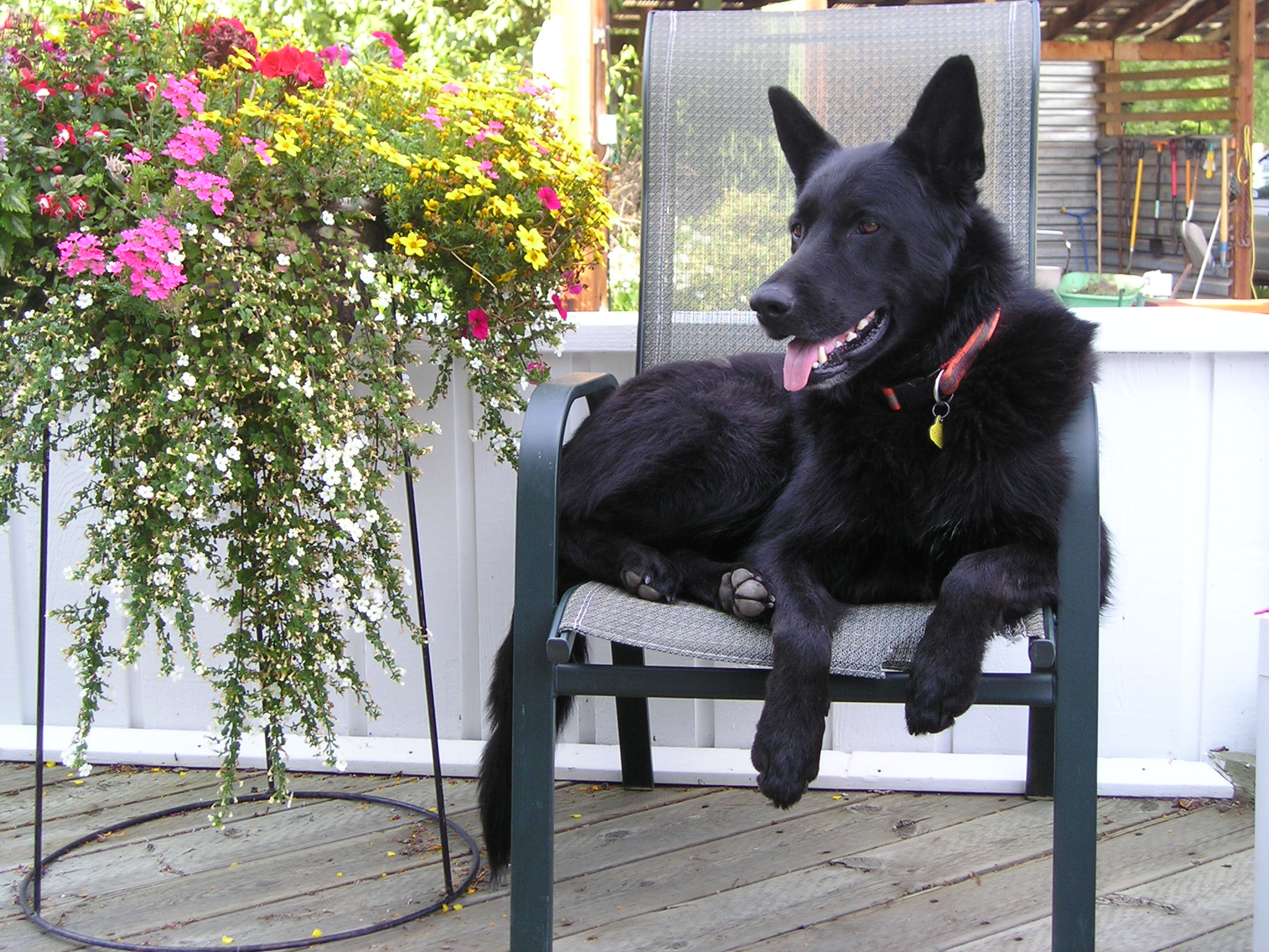 Can't resist any longer...my dog Lucy (now 7), a lab/shepherd/??? cross. She's a great friend to all other dogs and people.
