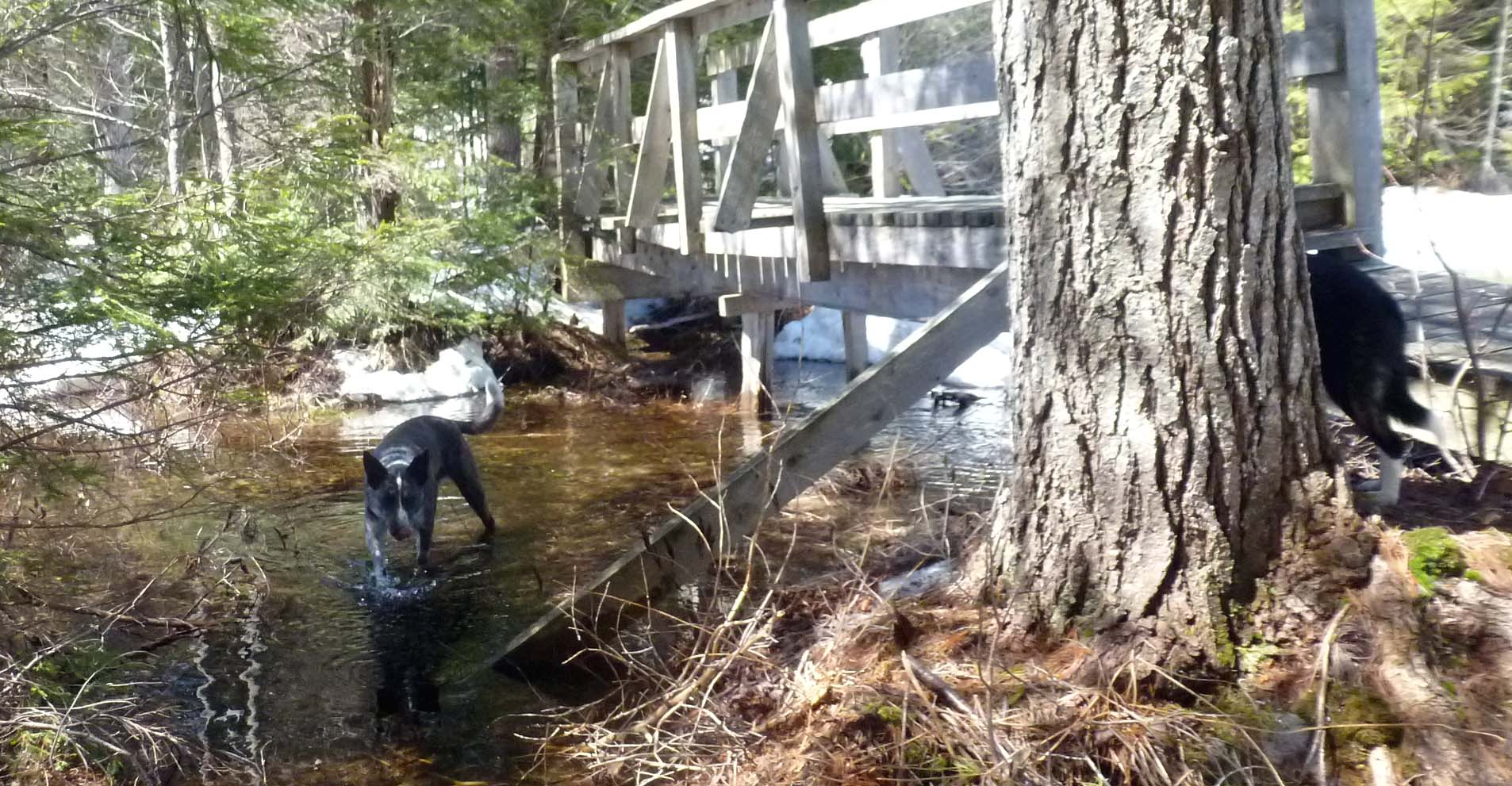 Here is a certain puppy who's afraid of water and won't cross the creek. (most puppies do this)