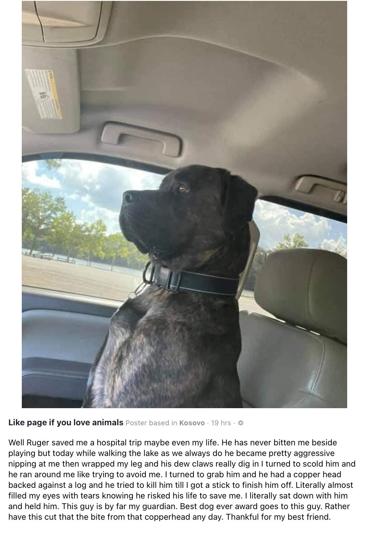 My shepherd steered me across the road around a copper head 1 night. I never used to walk with a flash light since we had street lights every 200ft down the street.
