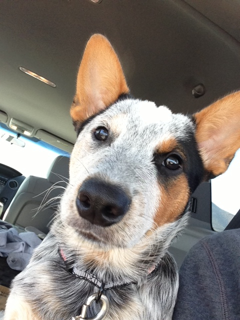 One thing I've discovered is dogs love pick ups and golf carts. This is Tag doing his best Rin Tin Tin impression before the glaucoma took his sight.