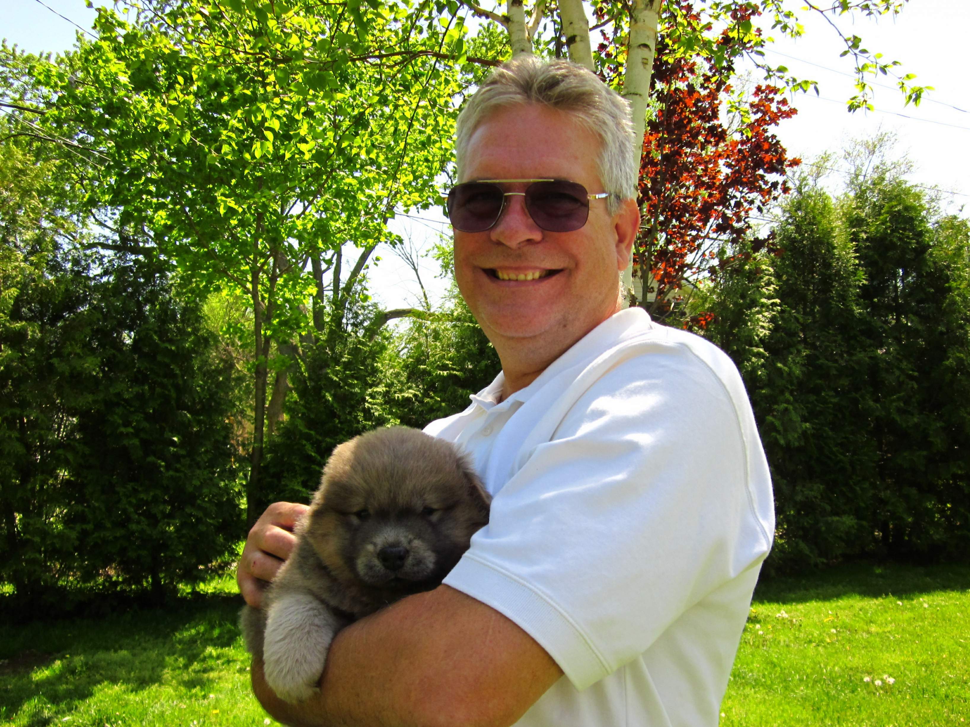 Our new purebred member to the family that we brought home Saturday, Heather, a female Chow at six weeks old. She will join a 3 year old sister and a 2 and 5 year old brother. The first picture is her being greeted by her 2 year old broher.