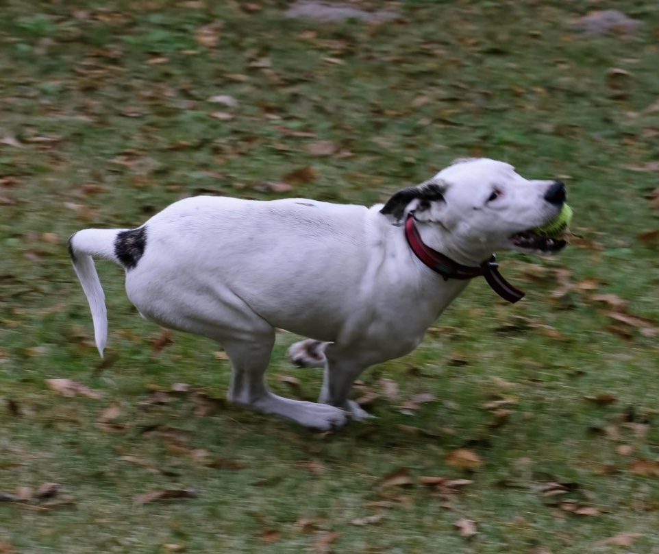 We were using dog squeakers to get their attention to make pictures for the area dog shelter. Made the mistake of tossing one like a toy, and this one took off after it. I was afraid he was going to swallow it and choke, but we finally got it away from him. He got adopted several weeks later.