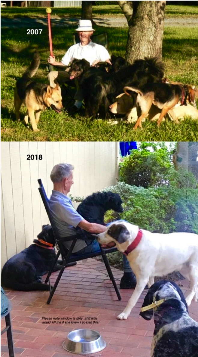 My father in both pictures. The white dog in the bottom pic is our neighbors dog. He likes to come over to play all the time LOL