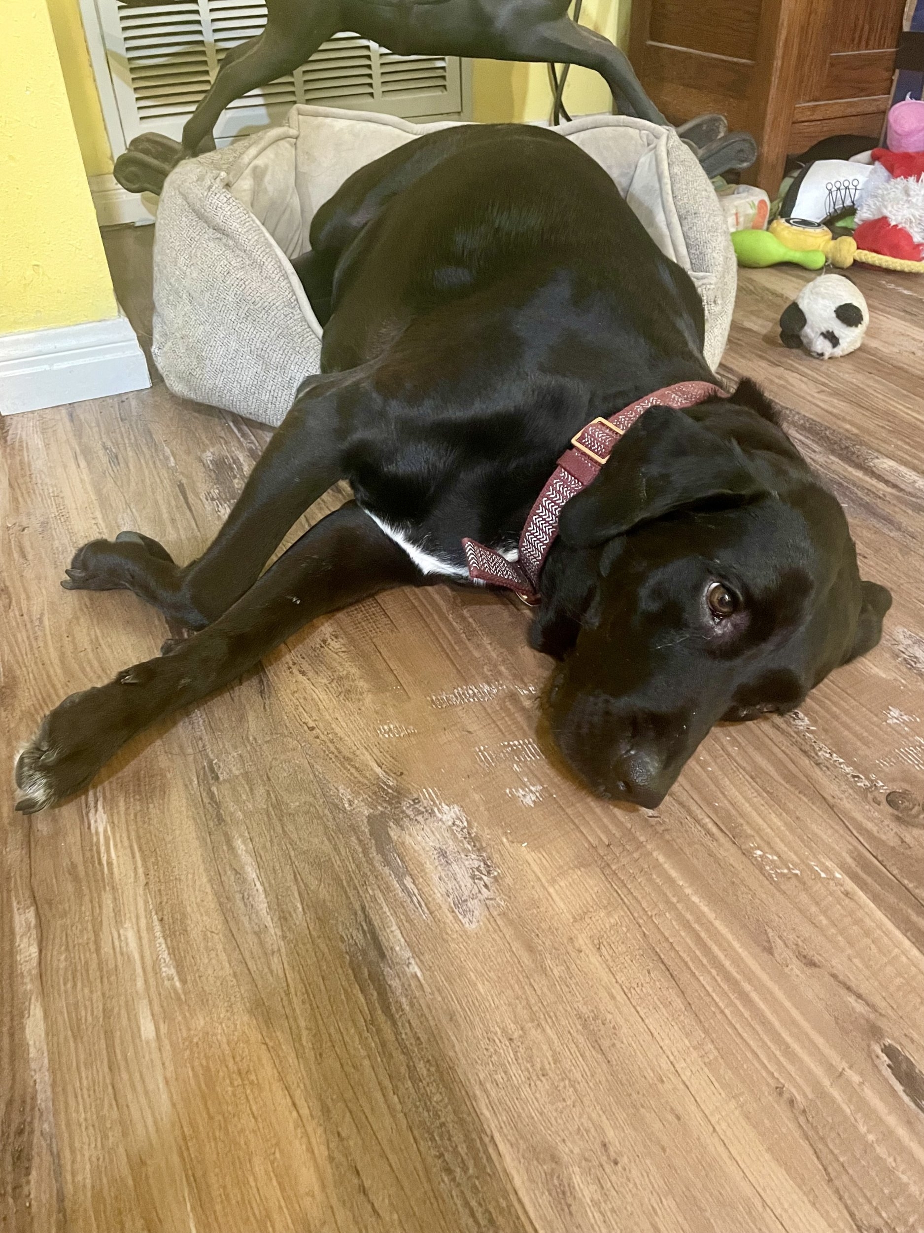 her own, damaged a front paw in a steel jaw trap, until we finally coaxed her in the car in early 2020. She was a true blessing to us during the lockdown and every day since. She’s a big sweet gentle girl, but don’t turn your back on your pulled pork sandwich. She’ll snatch it and disappear before you can blink.