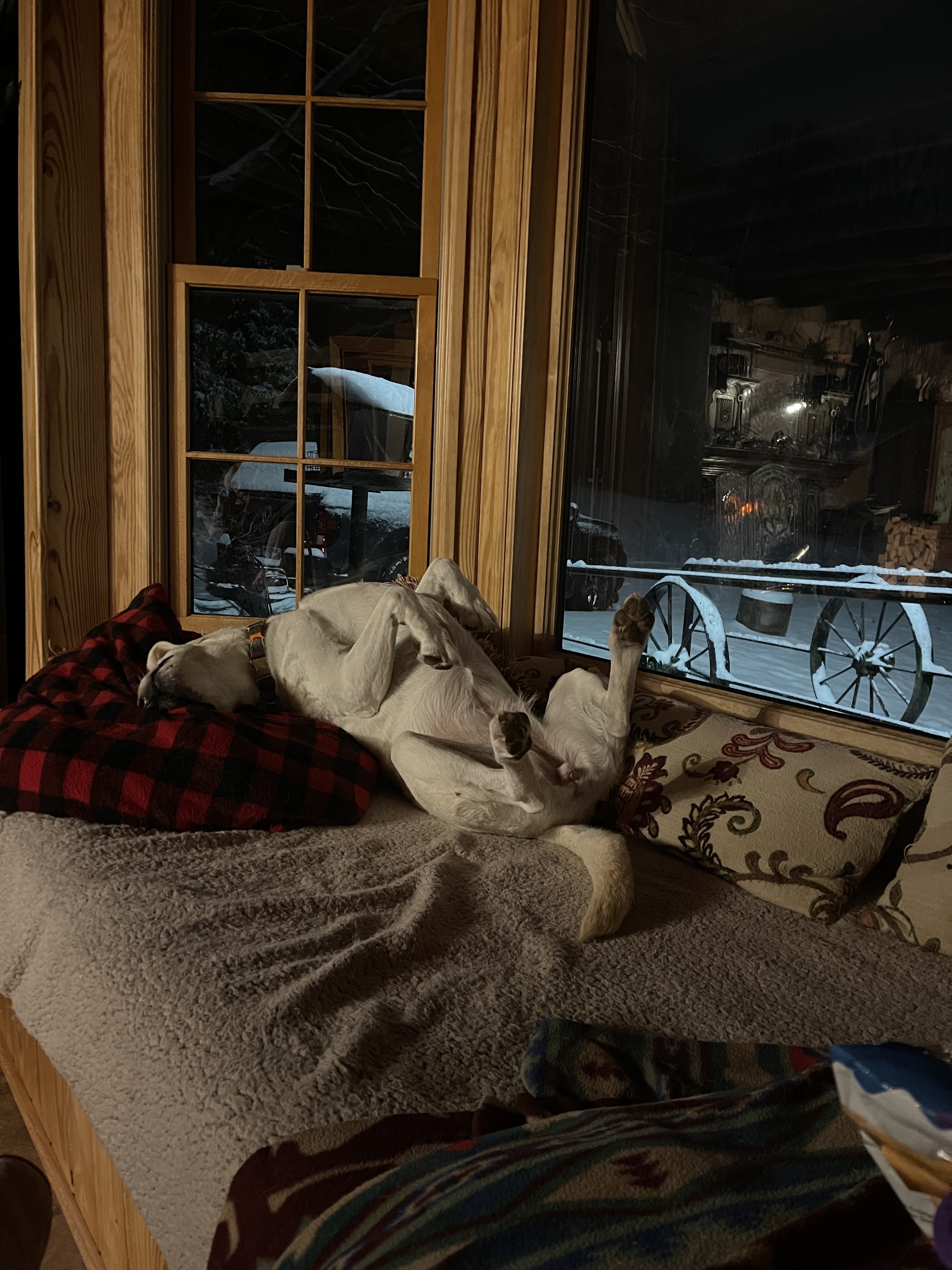 Then is ready to lay out by the fire. No snow for us, but hope she gets