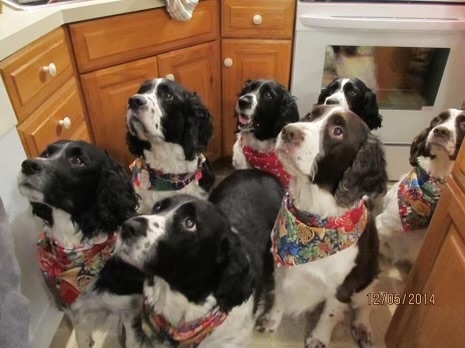 Bigger, but look like my now gone Terror Mongrels when I took a baking tray of chicken out of the oven.My wife bakes dog cookies and this photo is when we had lots of Springers. They loved those dog cookies and loved her, so when a batch was ready, they knew it.